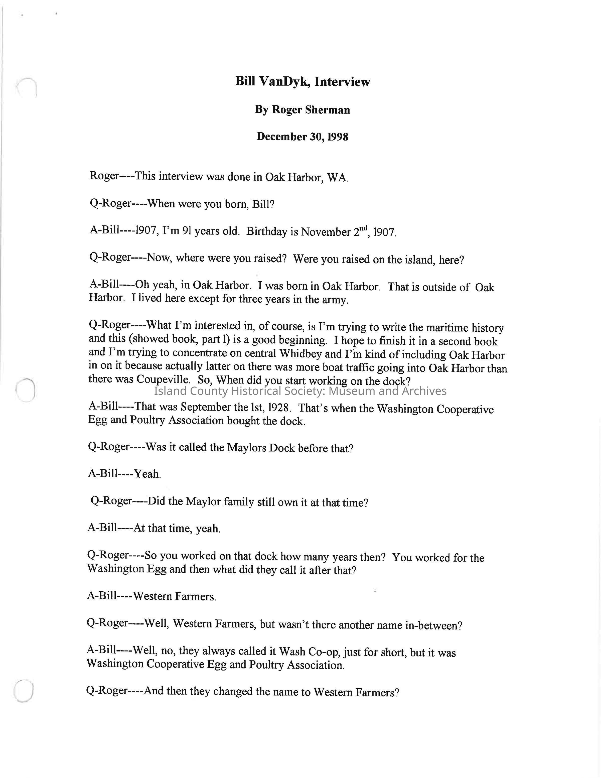 Interview with Bill VanDyk