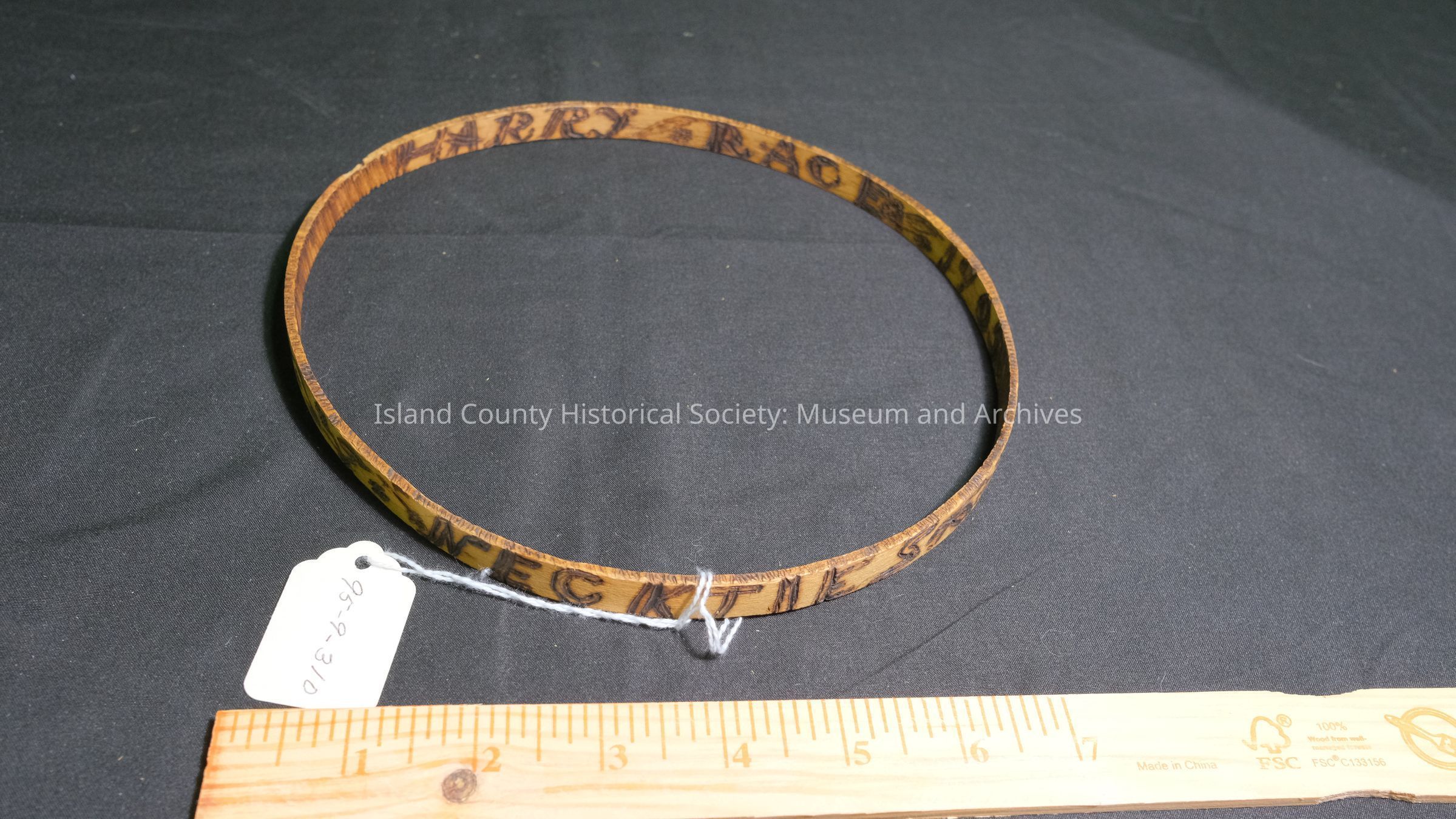 Necktie holder - burned design, circle wood.