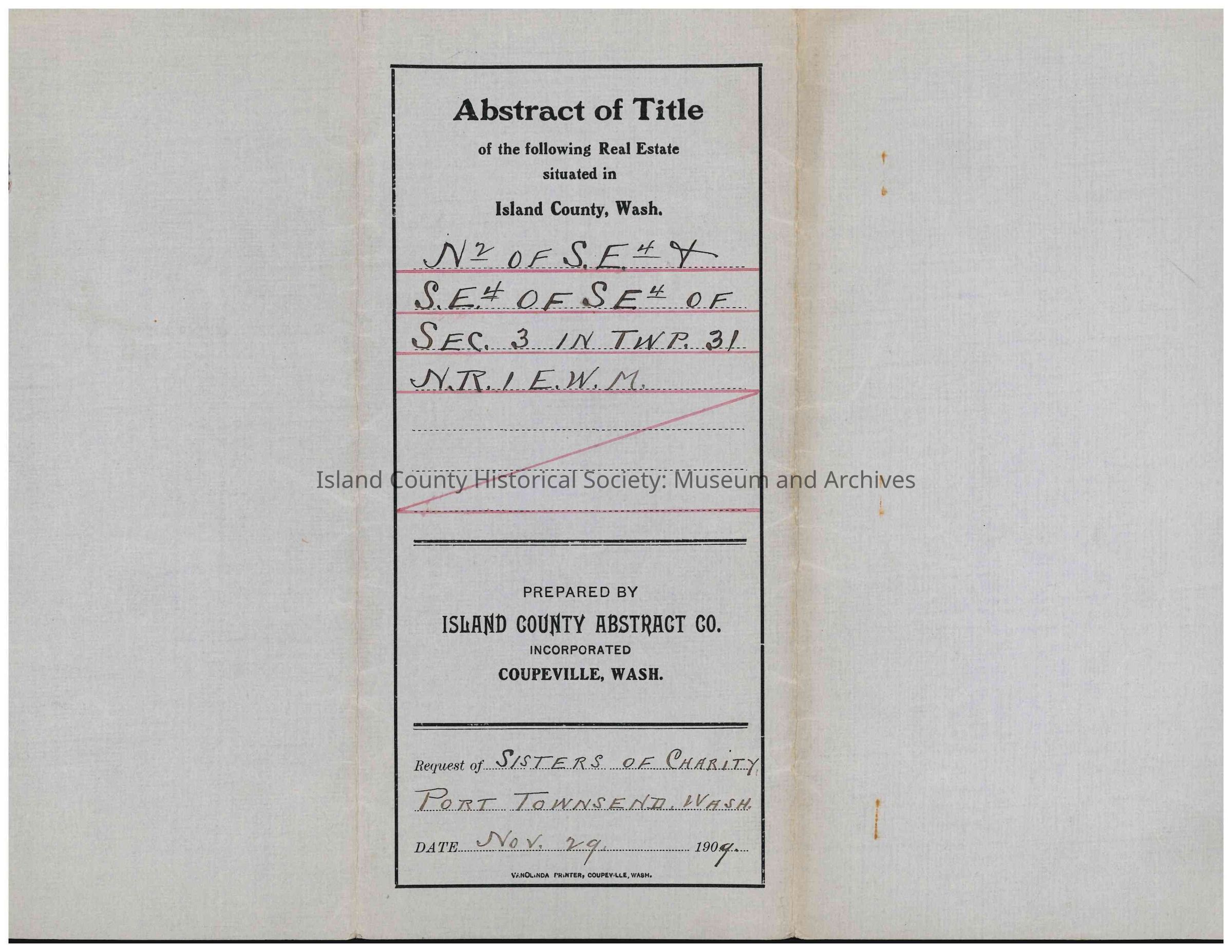 More Grantors and Recipients are listed within this title. To view this Abstract of Title and its subsequent Grantors/Recipients, please email the ICHS Archivist at arc-ichs@whidbey.net.Collection