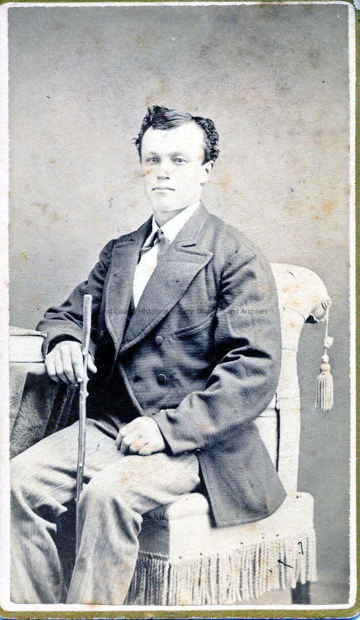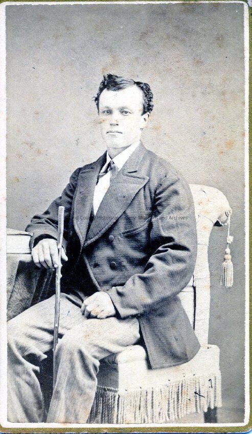 Portrait of Jacob Jenne wearing a suit and sitting holding a walking stick. On the back is number 172; the accession book states this is unknown man in age 30 Jacob Jenne.