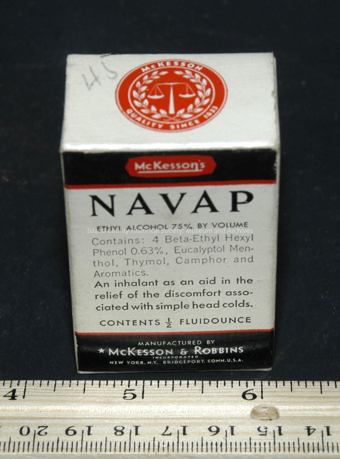 green bottle in box - 2 1/4" with cap - McKesson - Navap - inhalant - liquid - full