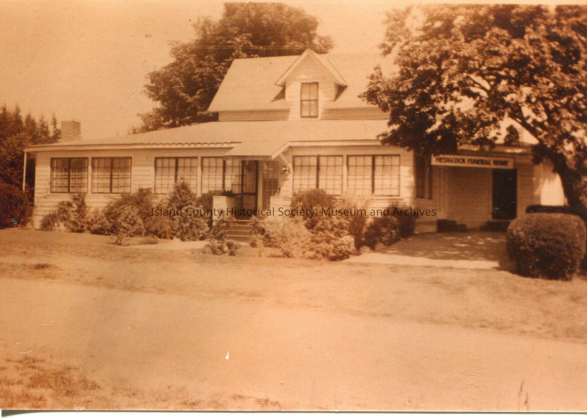 Marion Perry Hedgcock purchased the funeral home in Langley in 1945 from a family by the name of Swedberg. The Swedbergs were the original owners/builders of the funeral home. This building is located in Langley at the corner of Park Avenue and 3rd Av. The Hedgcocks also had a chapel and casket room in Coupeville.