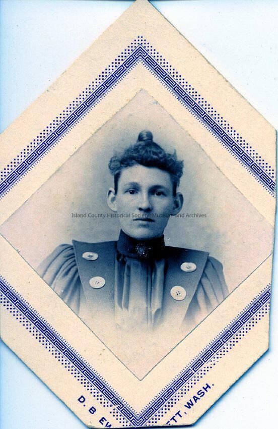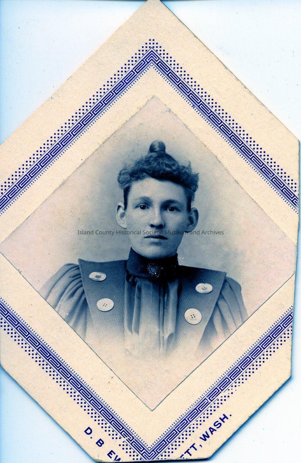Portrait of Agnes Smith Jenne wearing a dress with very large buttons on it. On the back is number 177; the accession book states this is Agnes?.