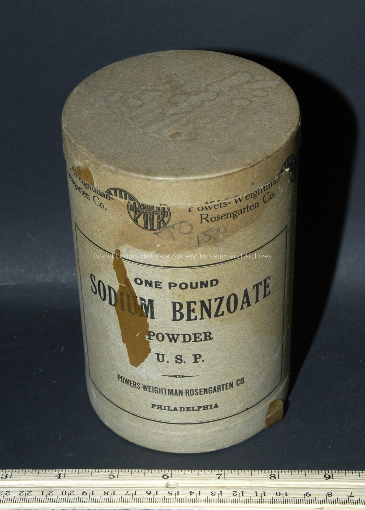 paper can 6 1/2" Powers-Weightman-Rosengarten Sodium Benzoate - part full