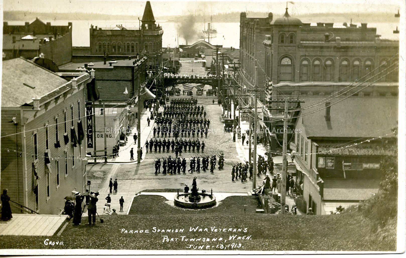 Postcard states Parade Spanish War Veterans Port Townsend, Wash. June 13, 1913 Grove