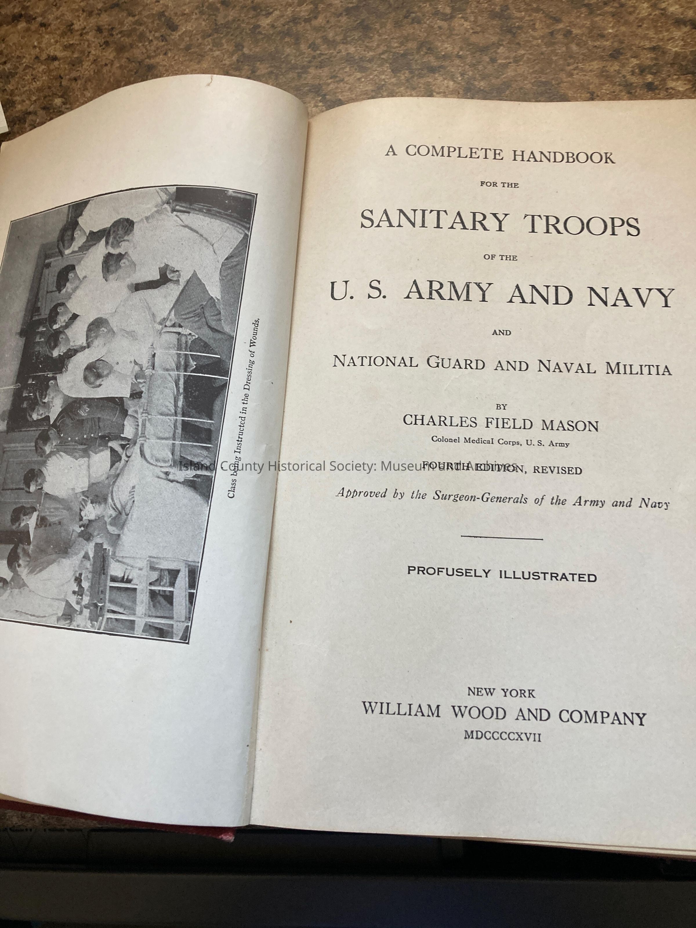 Mason, Charles Field, A Complete Handbook for the Sanitary Troops of the U.S. Army and Navy and National Guard and Naval Militia, 4th ed., revised, William Wood and Company, New York, 1917. BS-4-7 2016.010.002 5.13Lexicon