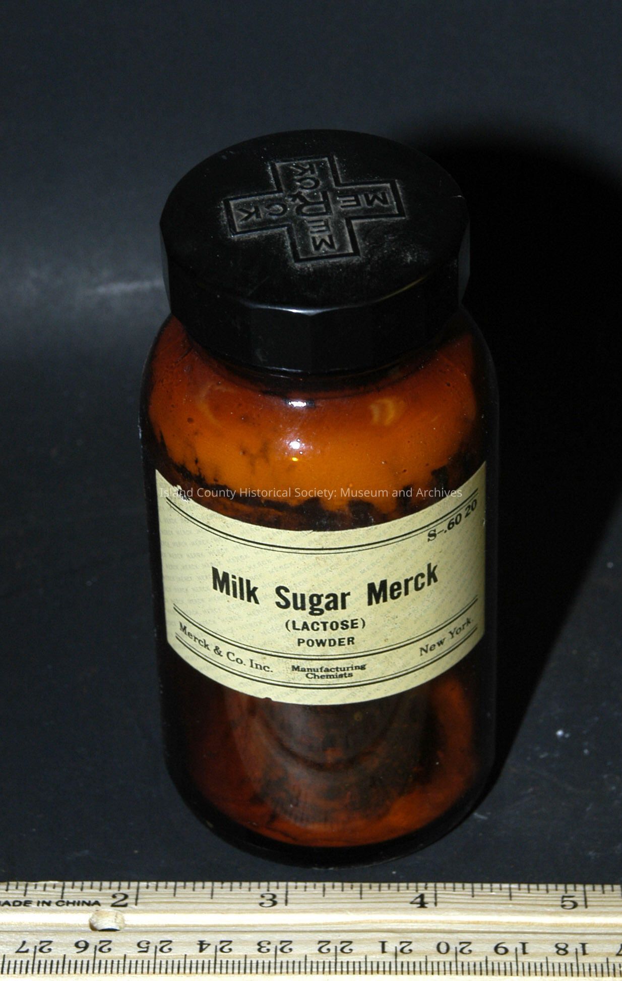 brown bottle 4 1/2" with plastic cap; Merck - Milk Sugar powder - trace