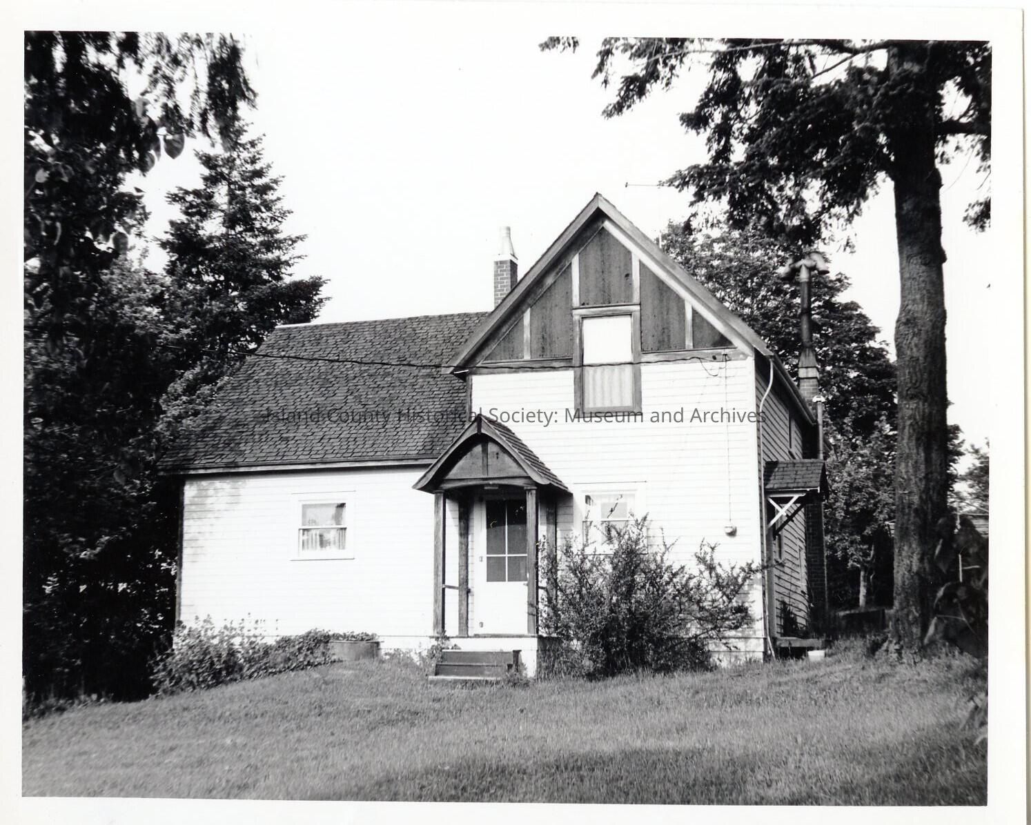 Horace Holbrook House built in 1895, Vernacular Farm. Wood frame set on post and pier foundation rectangle (25' X 20") Horace Holbrook, a local carpenter and shipbuilder, built this house c. 1895. Additions were made to the structure over the next few years with a second floor added over the kitchen area. During the survey work in 1971 Alice Forrester, Holbrook's niece owner the property. Few changes have been made to the structure with the exception of modernization of the interior. One of the board and batten outbuildings on the site was used by Holbrook as a boat building shop. The house is located at 805 Northwest Alexander Street, Coupeville and is now own by Jeanne Carrington. parcel #R13233-352-3600
