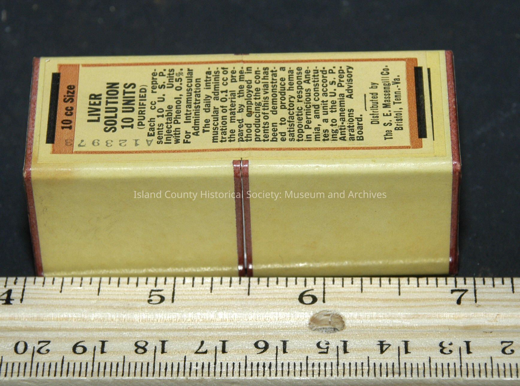 paper box 2 3/4" x 1" x 1" (full) bottle inside 10cc Liver Solution 10 units purified The S.E. Massengill Co. Birstol, Tenn.-Va.