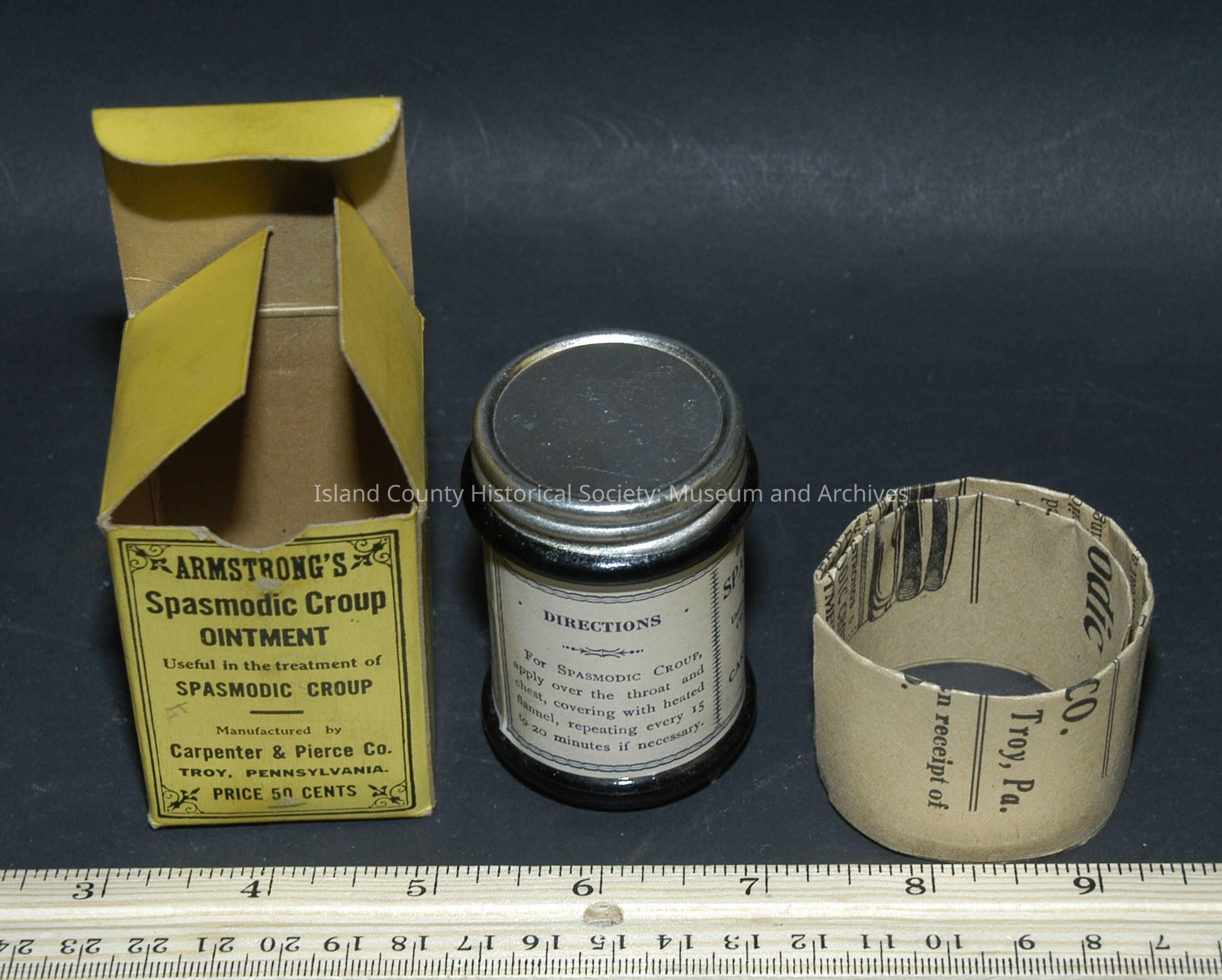 black jar in box 2 1/2" with cap - Carpenter - Pierce - Spasmodic Croup Ointment - salve - full