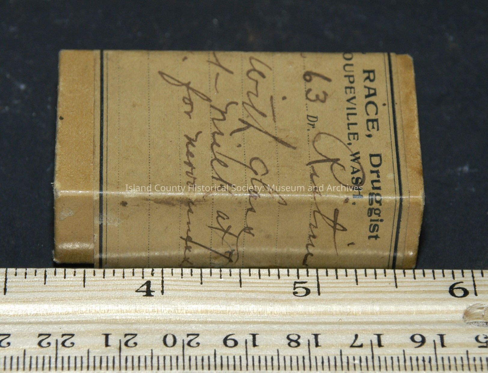 paper box 2 5/16" x 1 5/16" x 3/4" (some powder in box) F.P. Race, Druggist No. 12263 Dr. Ristine Instructions: "One with glass of milk at 7 p.m. for nervousness"