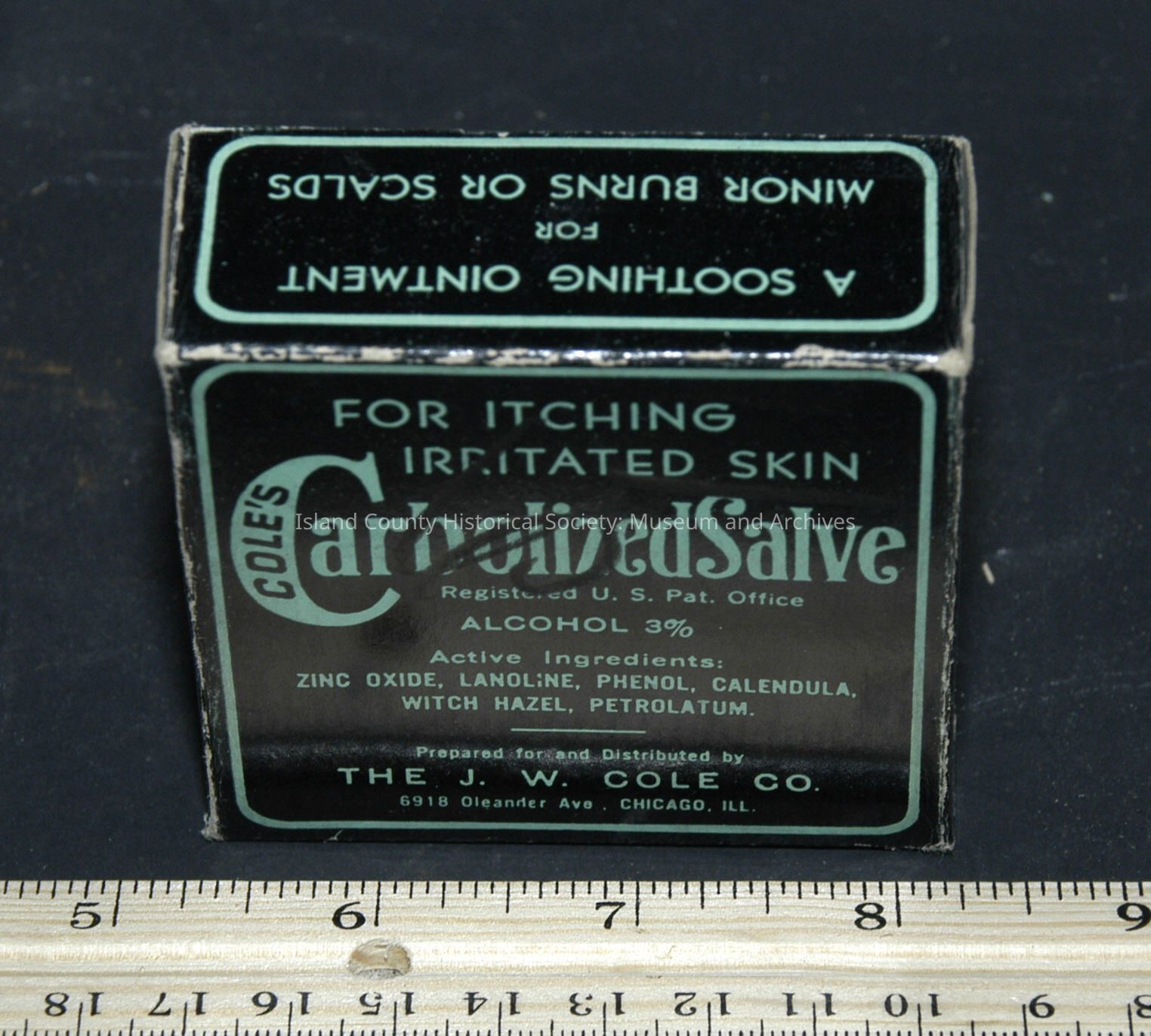 round tin - in box - 3 3/4" diameteer - J. W. Cole - Cole's Carbolized Salve - salve - full