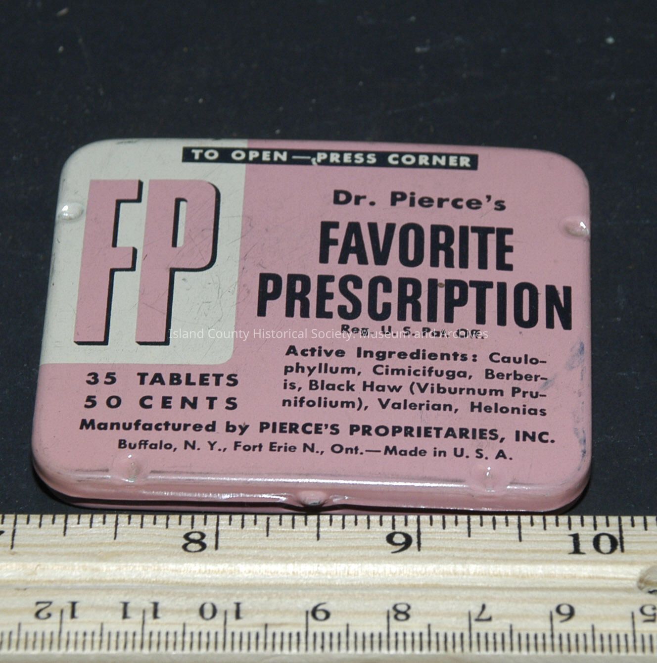 meteal box - 1/4" x 2 3/4" x 2 1/4" - Pierce's - Dr. Pierce's Favorite Prescription - tablets - full