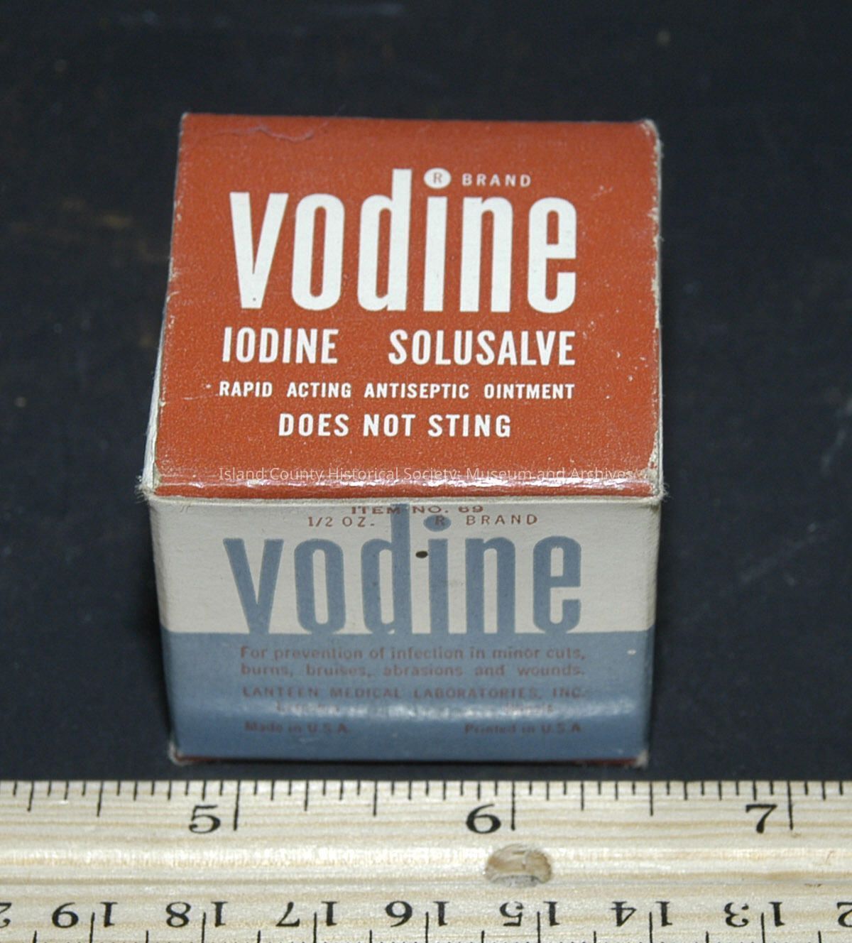 white jar in box 1 1/4" with cap - Lanteen - Vodine Iodine Solusalve - salve - full