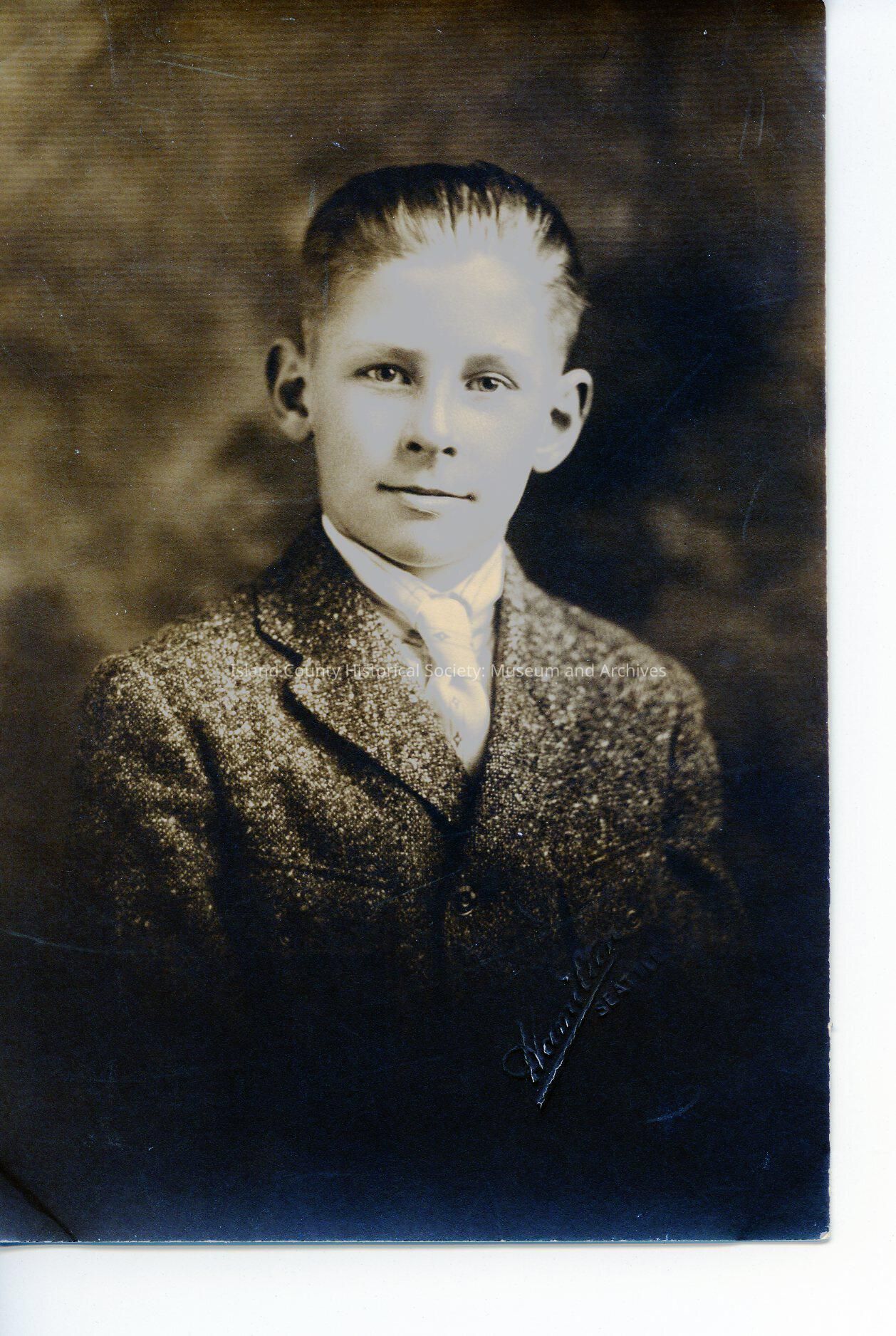 Portrait of a young George Barrington wearing a tie and a suit jacket. George was adopted by Harry (Barrington) and died at age 16 from blood poisoning.
