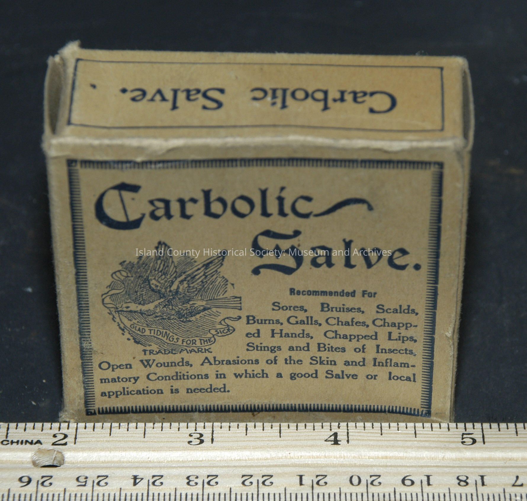 tin in box - 2 1/2" diameter - James F. Ballard - Carbolic Salve - salve - full