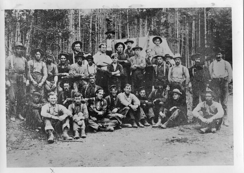 JA Neil in group (right), Jim Sullivan bottom row left (X). Group photo of the Neil Pole Camp Crew.