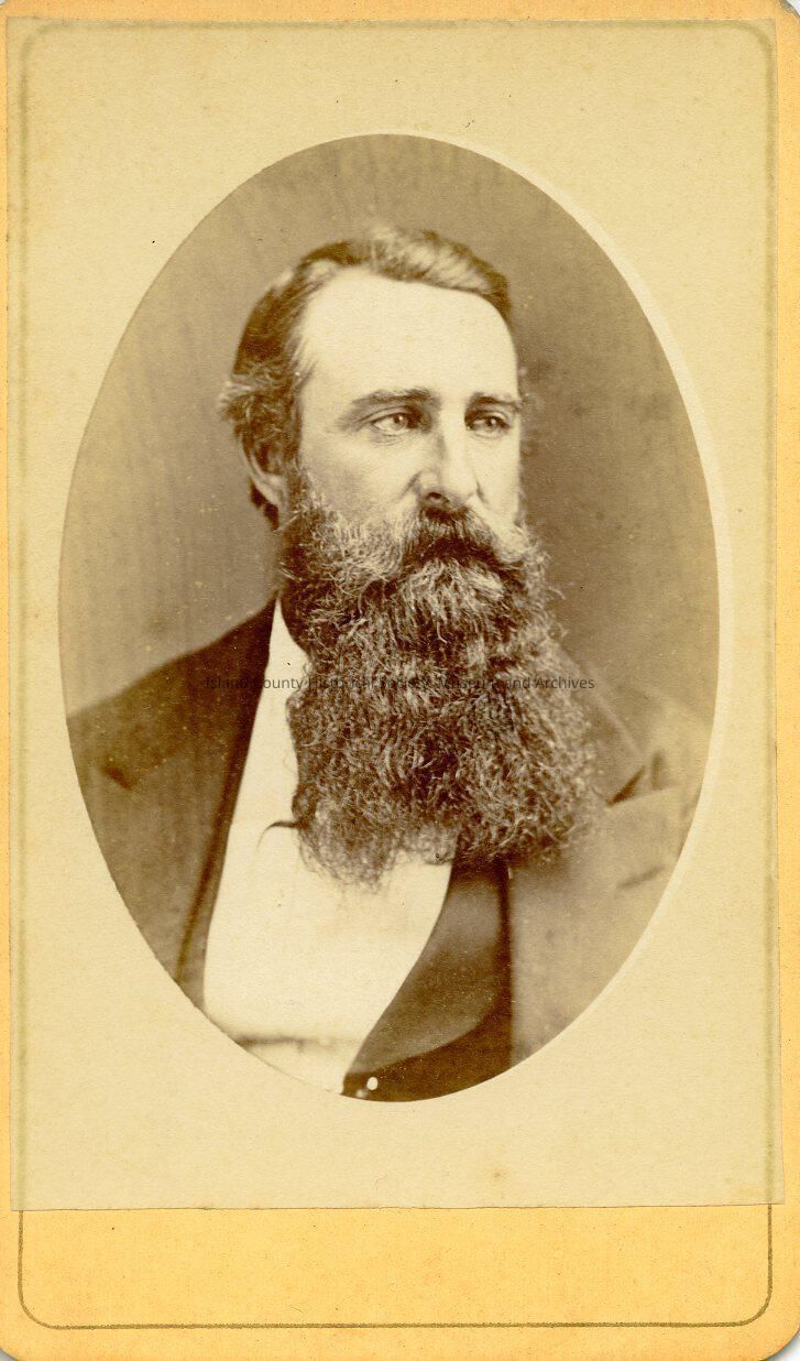 Unidentified man most likely of the Haller family. Portrait photo shows the man in a suit with a very large, long beard. Dark hair and beard looks to be dark with hints of grey and very bushy.
