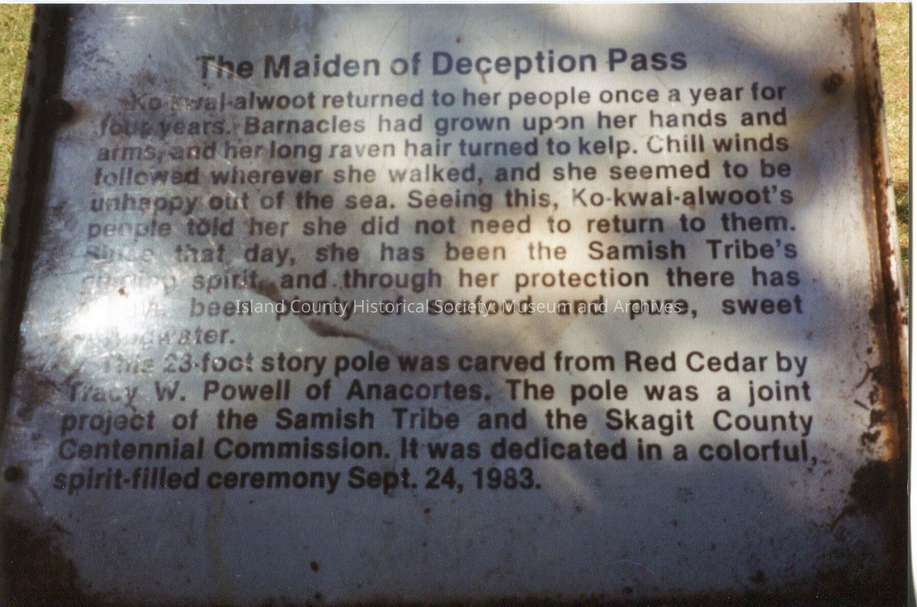 Plaque describing "The Maiden of Deception Pass". Located at Deception Pass State Park.