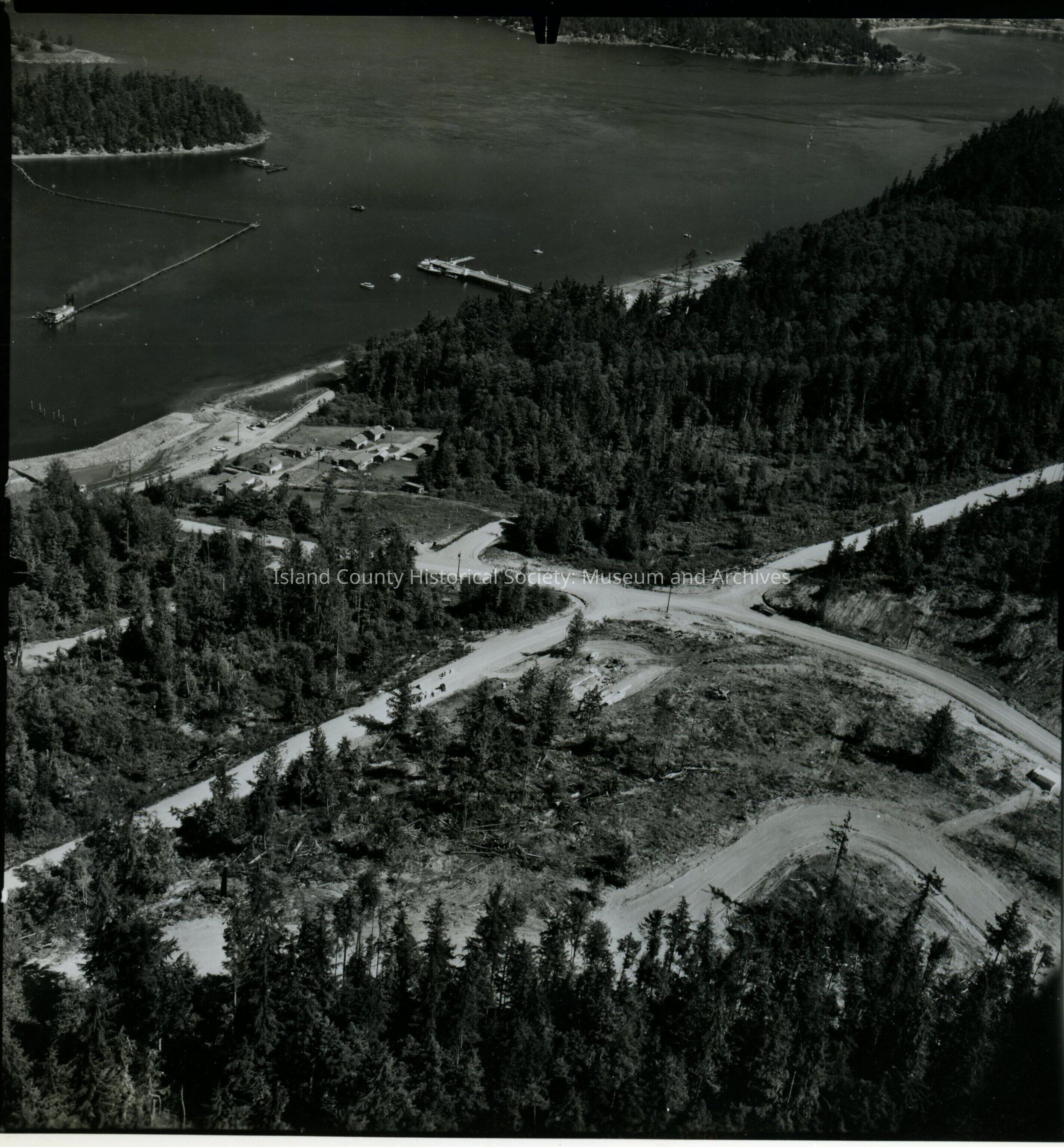 An aerial photo taken by Wallie Funk of a waterway and roads - slightly different angle than 2022.012.001