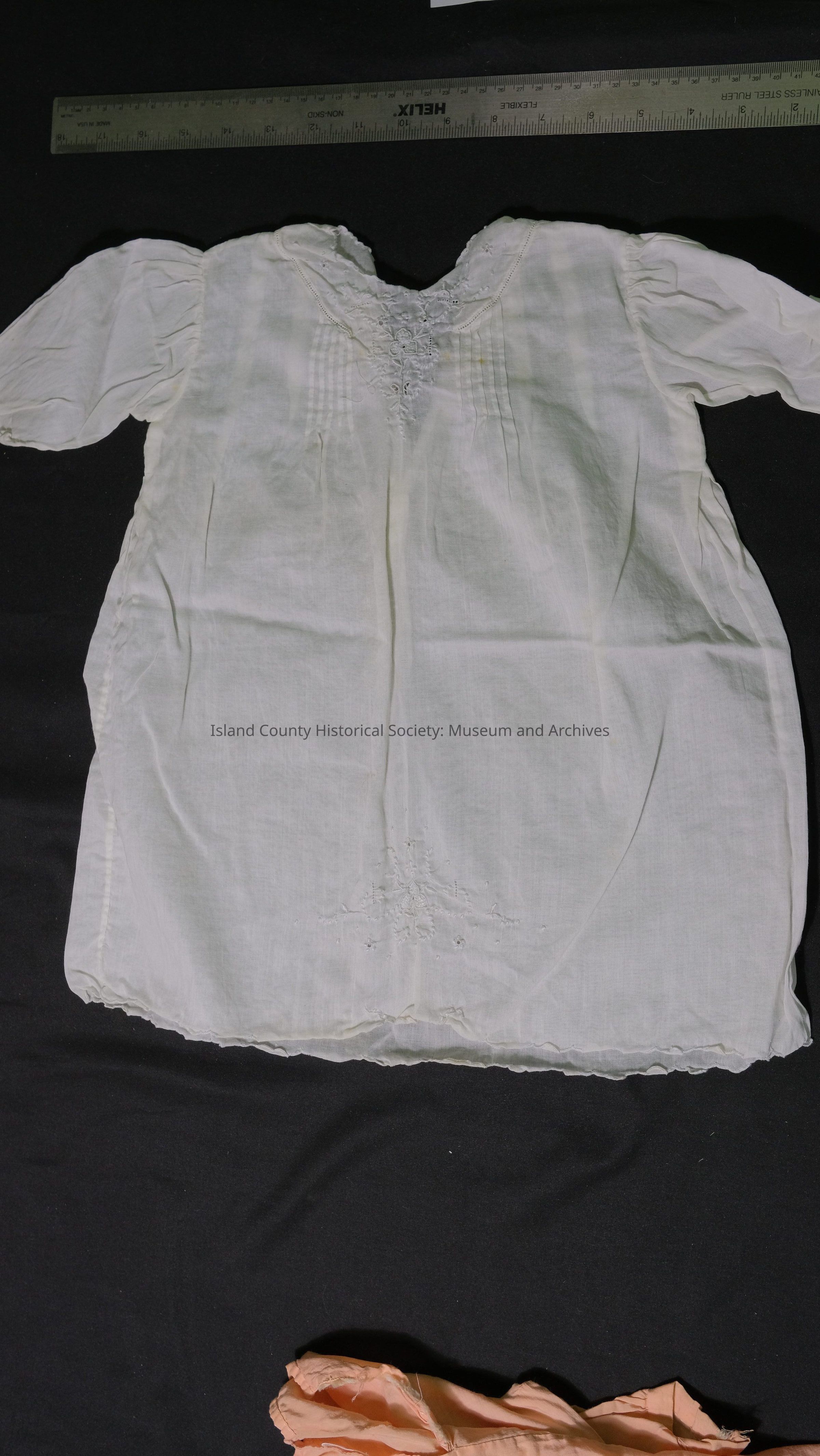 Baby Dress - white hand-made, size 2, embroidered, sheer with tucks. Margery Ellen Morris, daughter of Mary Ella Anderson Morris.