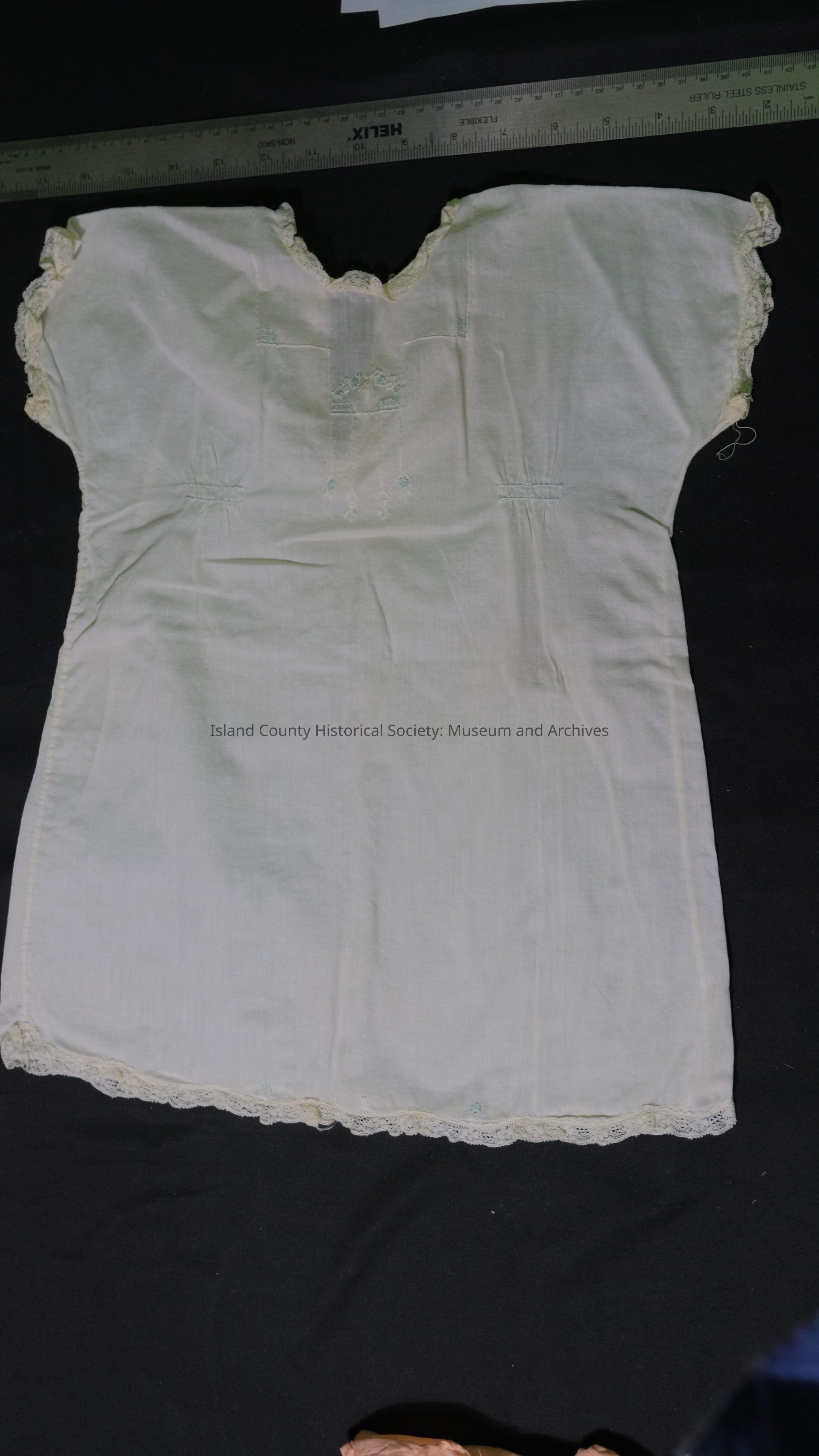 Baby Dress - white aqua embroidered, lace trim Margery Ellen Morris, daughter of Mary Ella Anderson Morris.