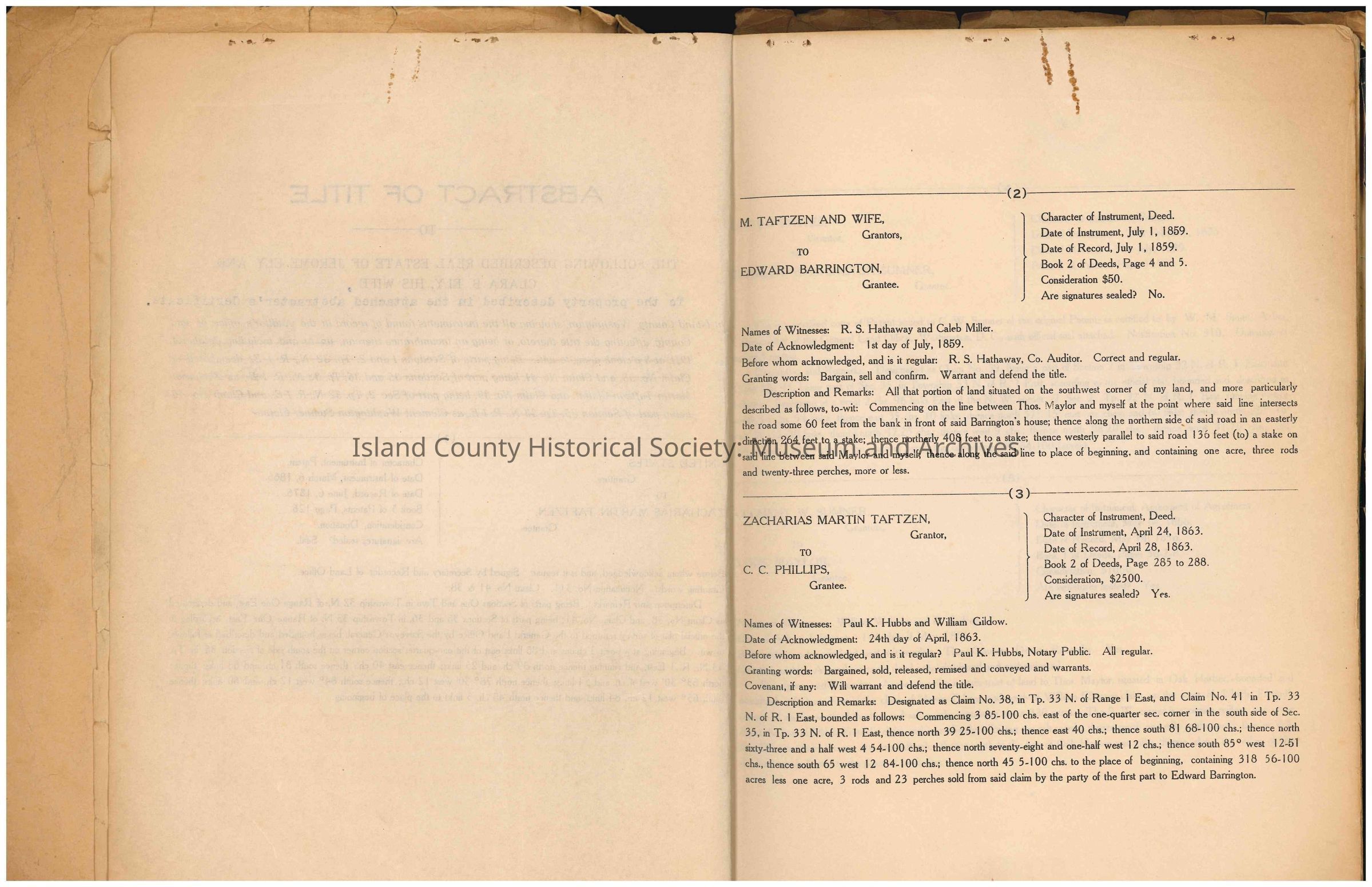 Taftzen, Zacharias Martin, Barrington, Captain Edward Joseph Carter, Barrington, Christina (McCrohan), Phillips, Charles C., Sumner, C.W, Maylor, Thomas, Engle, William Ballinger, Snow, Sarah J., Haller, Granville O., Morse, George W., Morse, Mary, Hill, Humphrey, Lombard Investment Company, Faaly, Henry, McGinnis, Isaac, Hathaway, R. S., Brown, W. M., Niel, Syrena