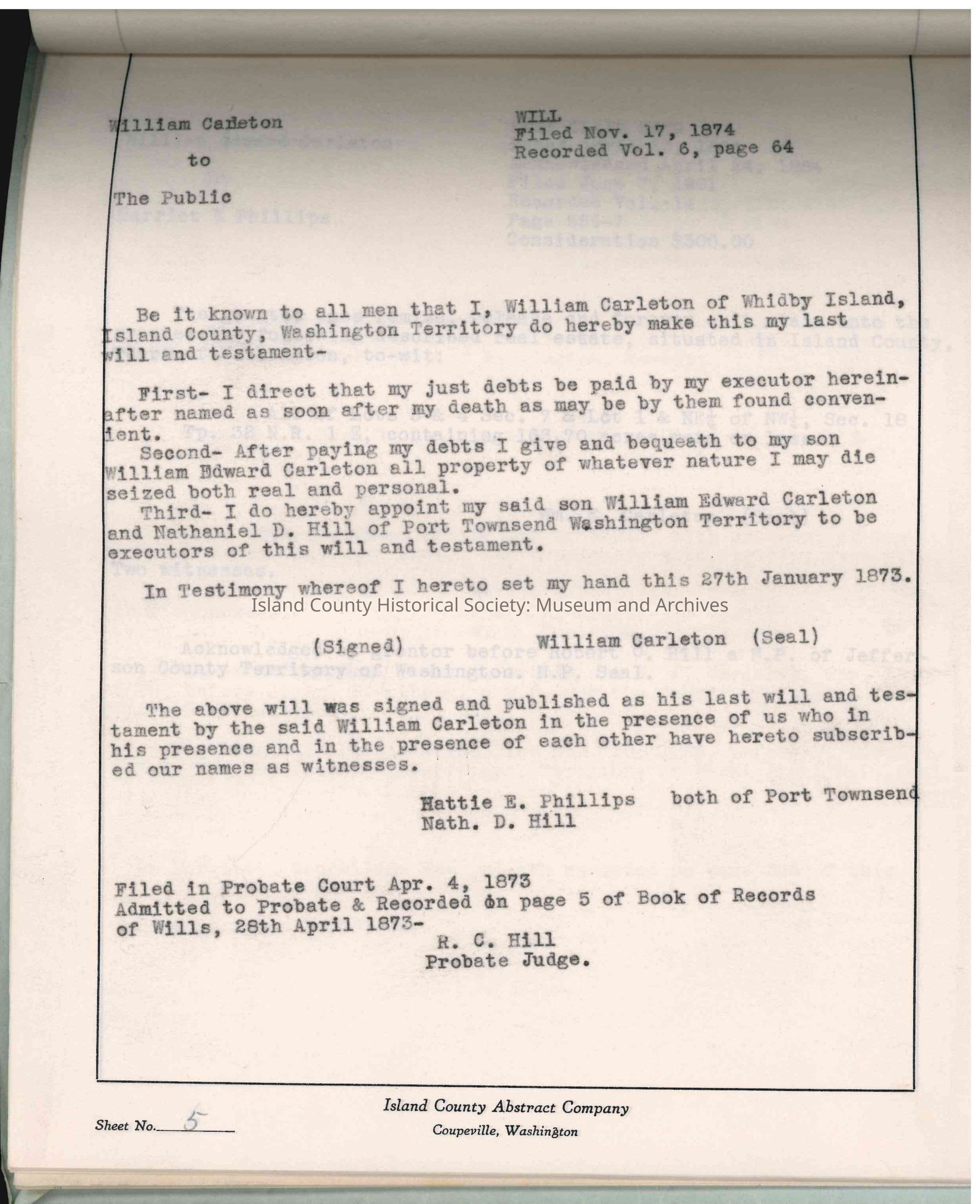 Fay, Philip, Carleton, Melissa Jane, Carleton, William Edward, Phillips, Harriet E.
