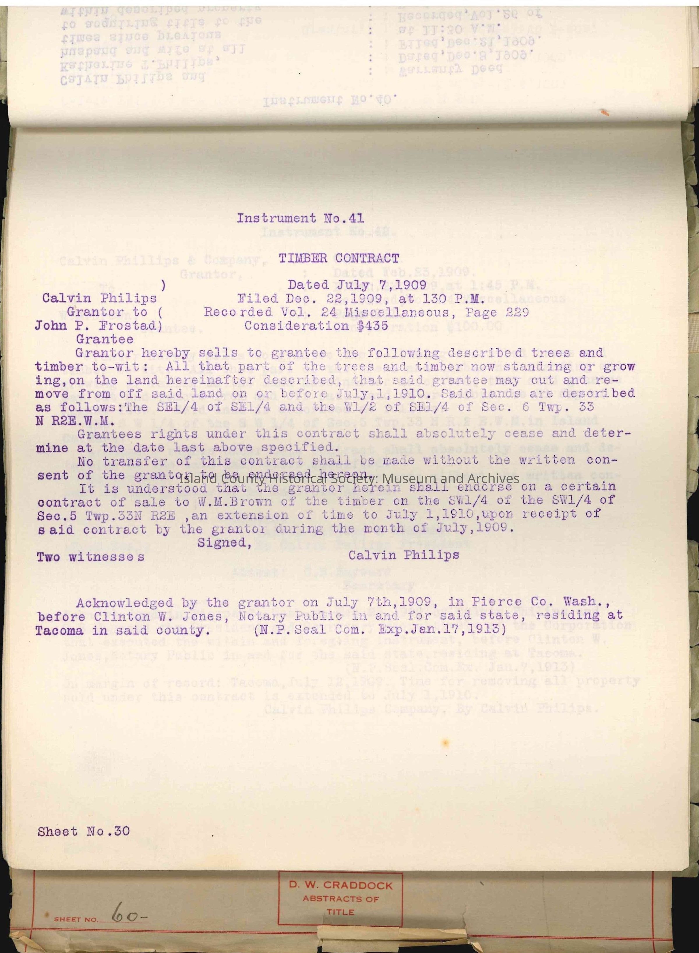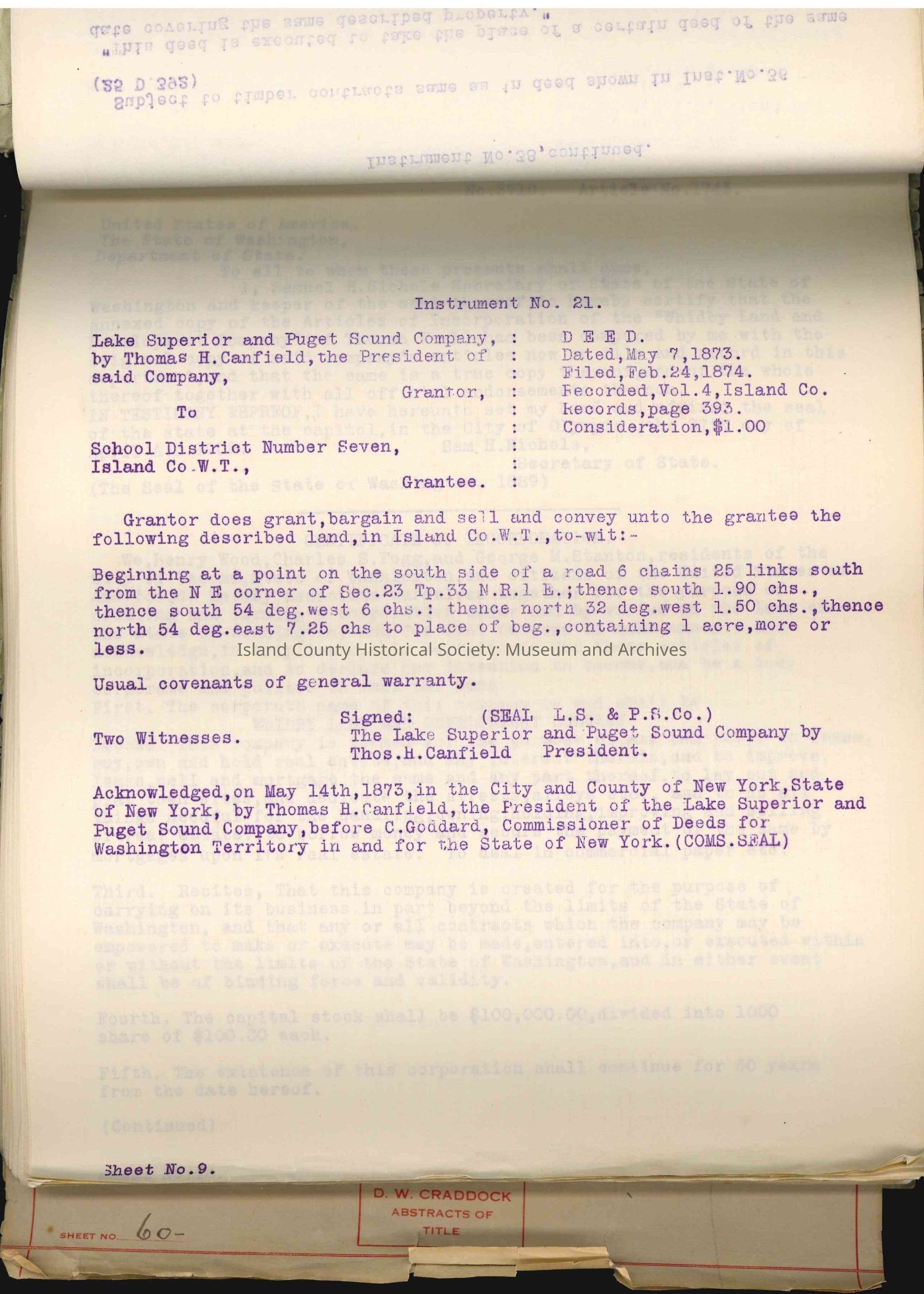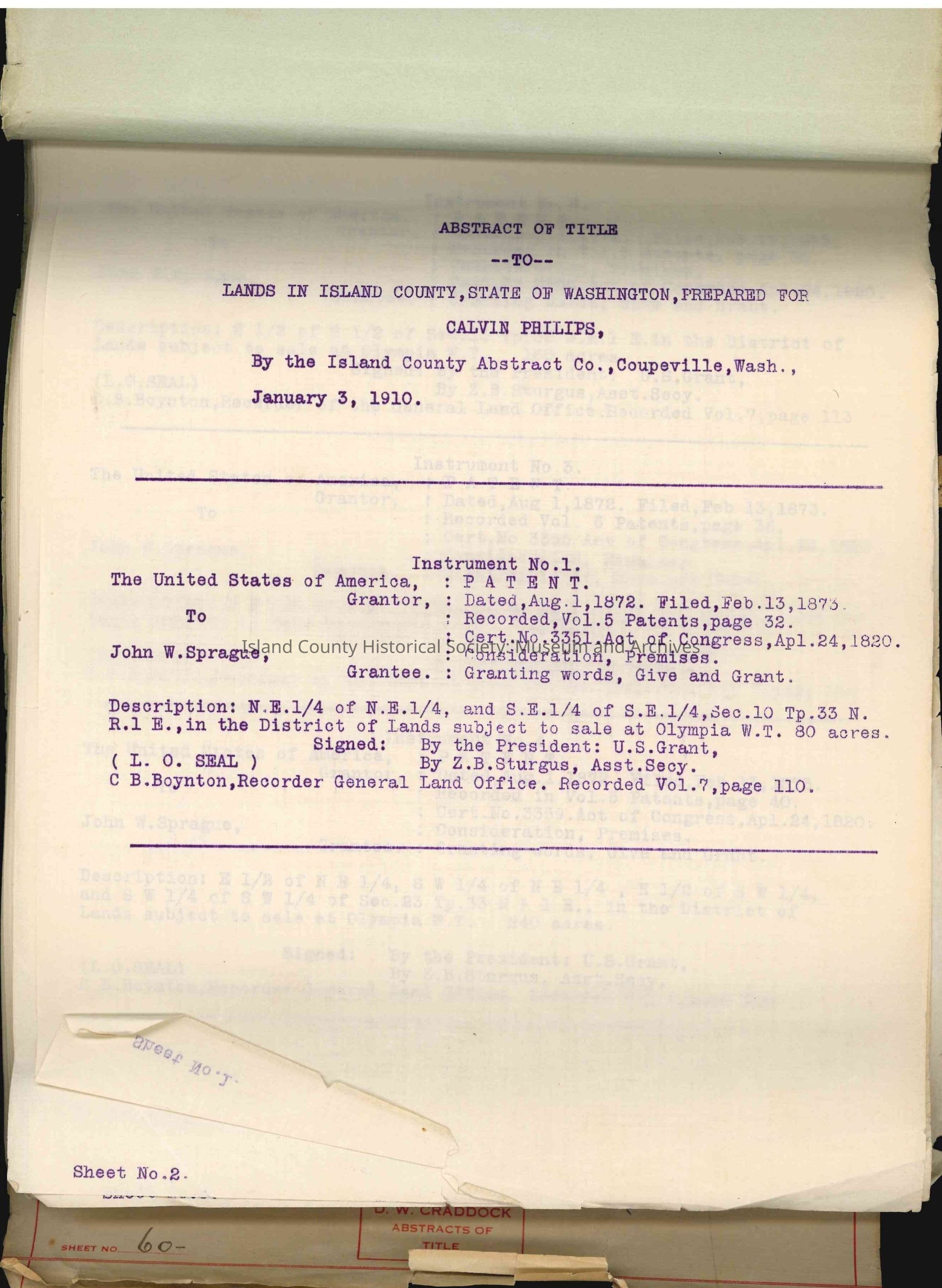 More Grantors and Recipients are listed within this title. To view this Abstract of Title and its subsequent Grantors/Recipients, please email the ICHS Archivist at arc-ichs@whidbey.net.Collection