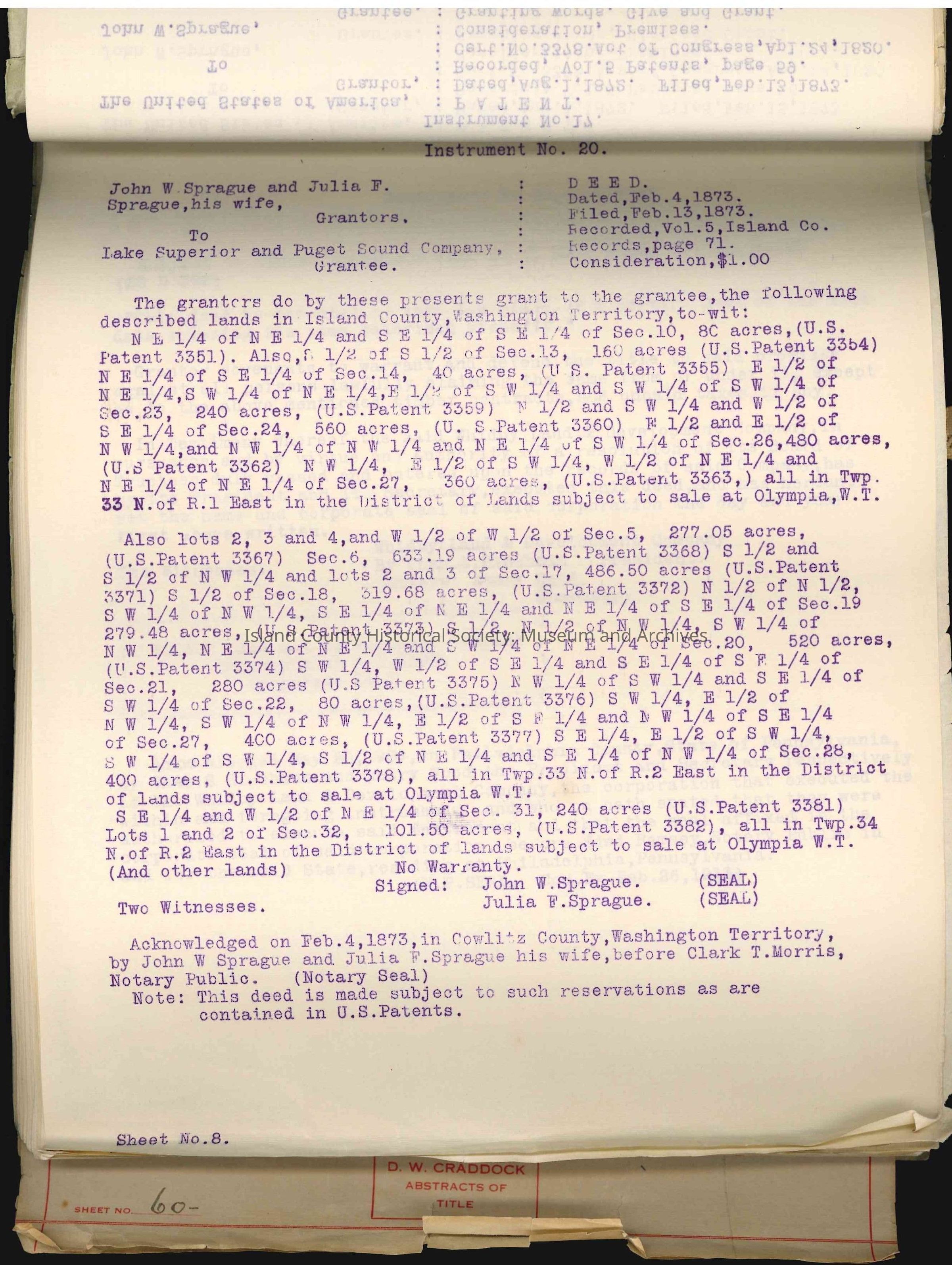 Sprague, John W., Whidby Land & Development Company, Lake Superior and Puget Sound Company, Potter, Julius S., Potter, Lina Lorena, Peoria Whidbey Island SyndicateRelated Places
