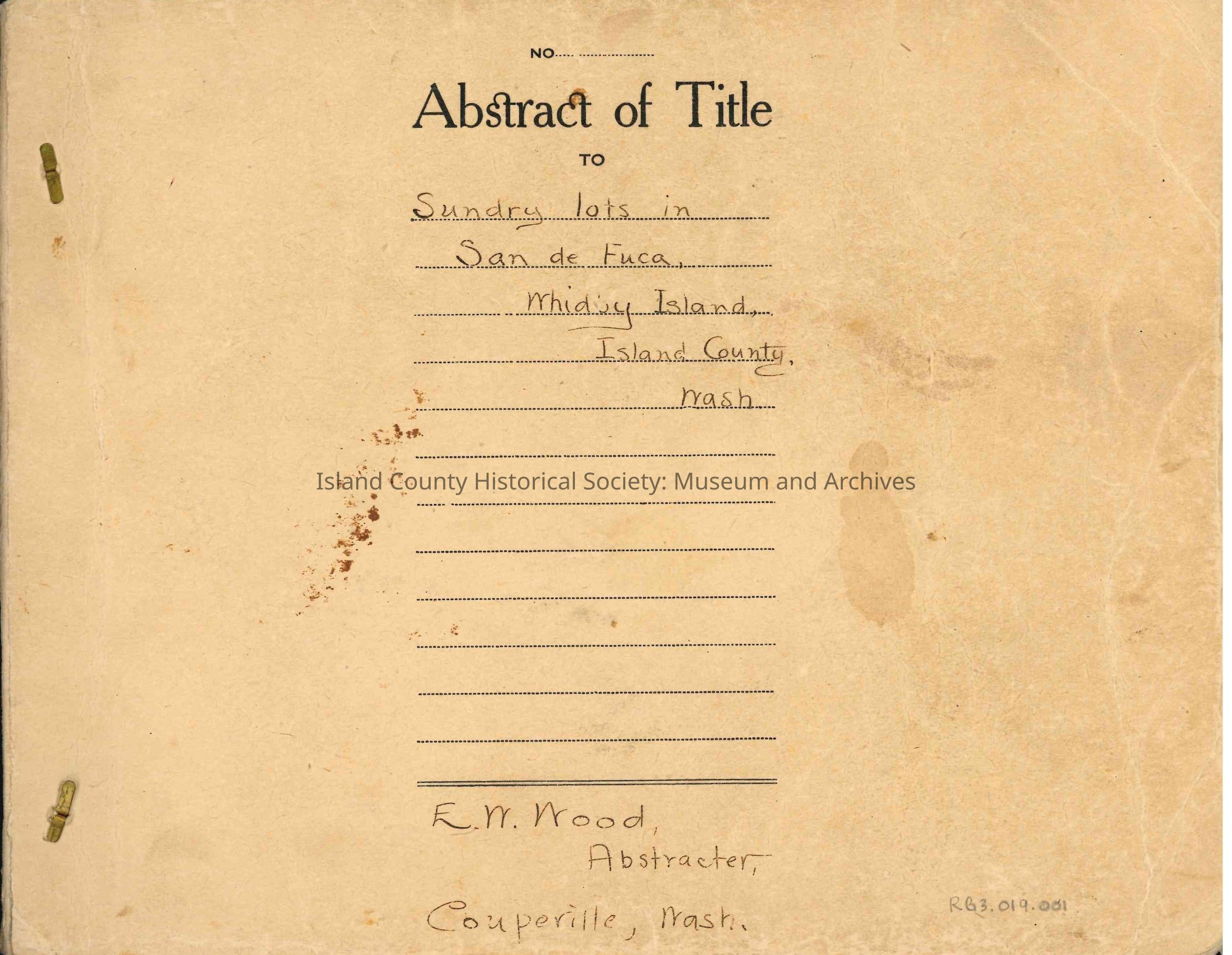 Abstract of Title for "Sundry lots in San de Fuca, Whidby Island, Island County, Wash."