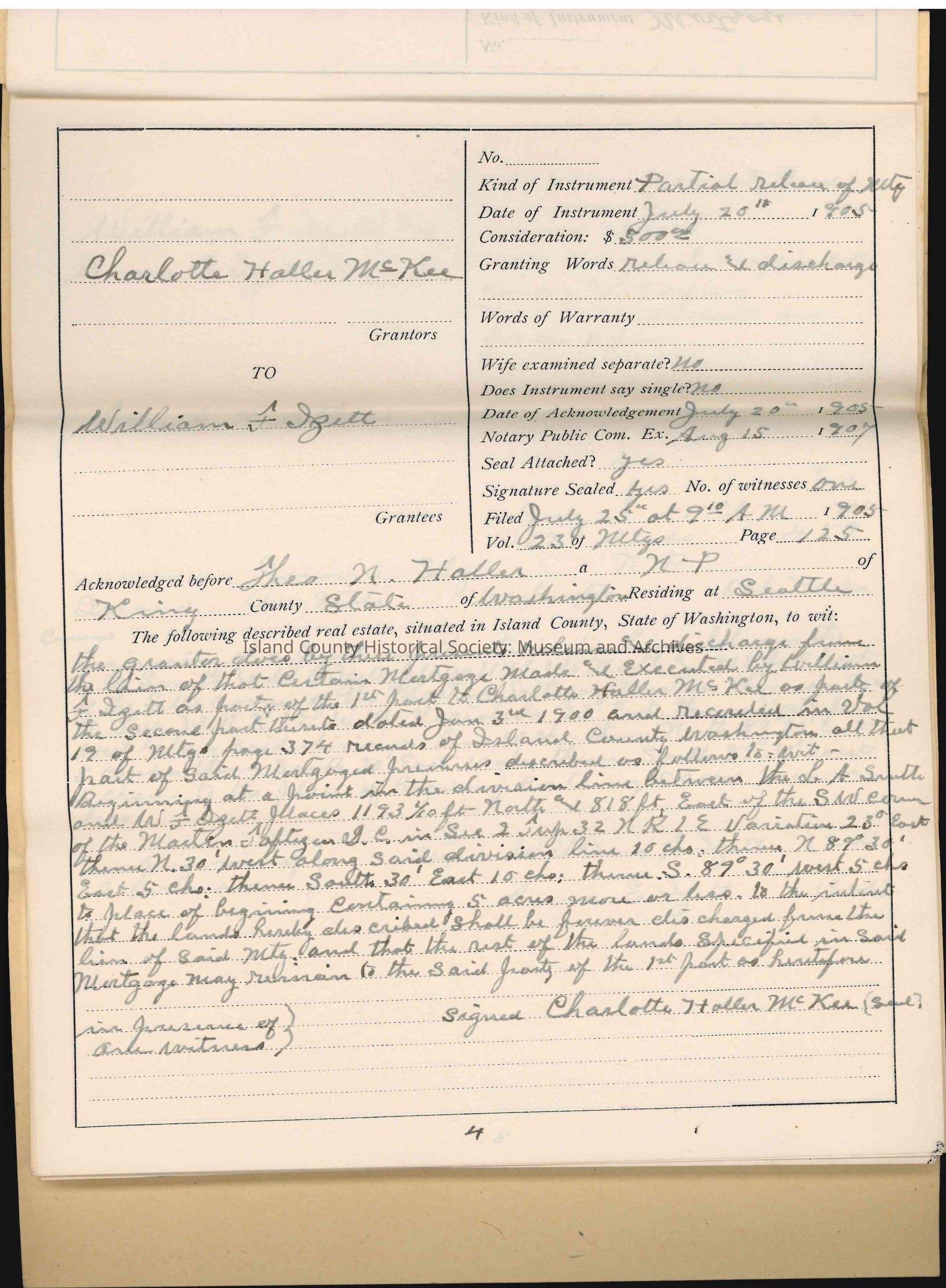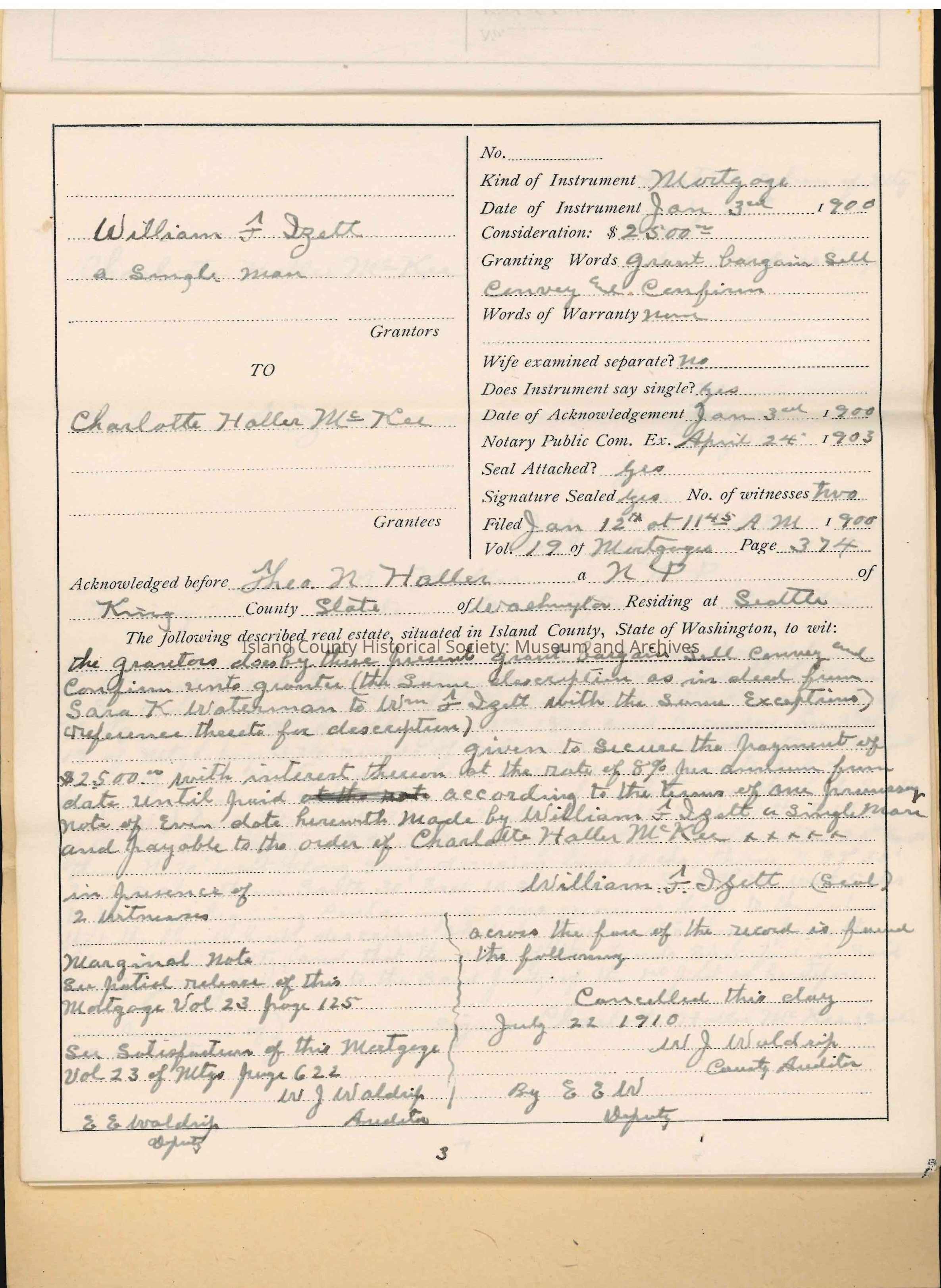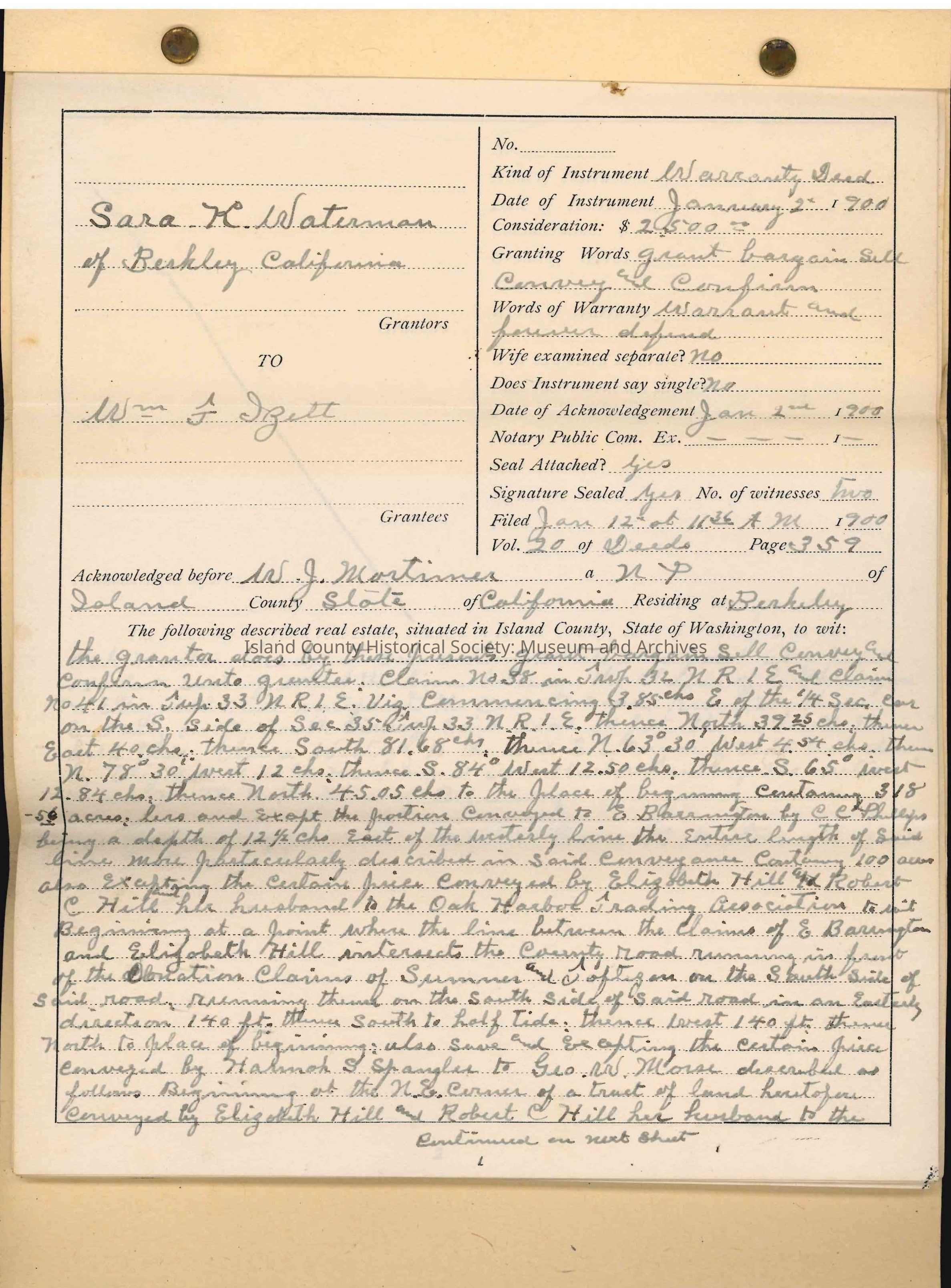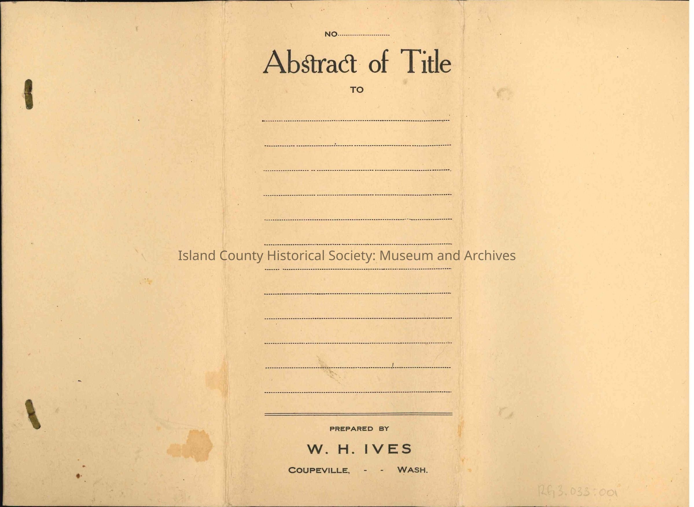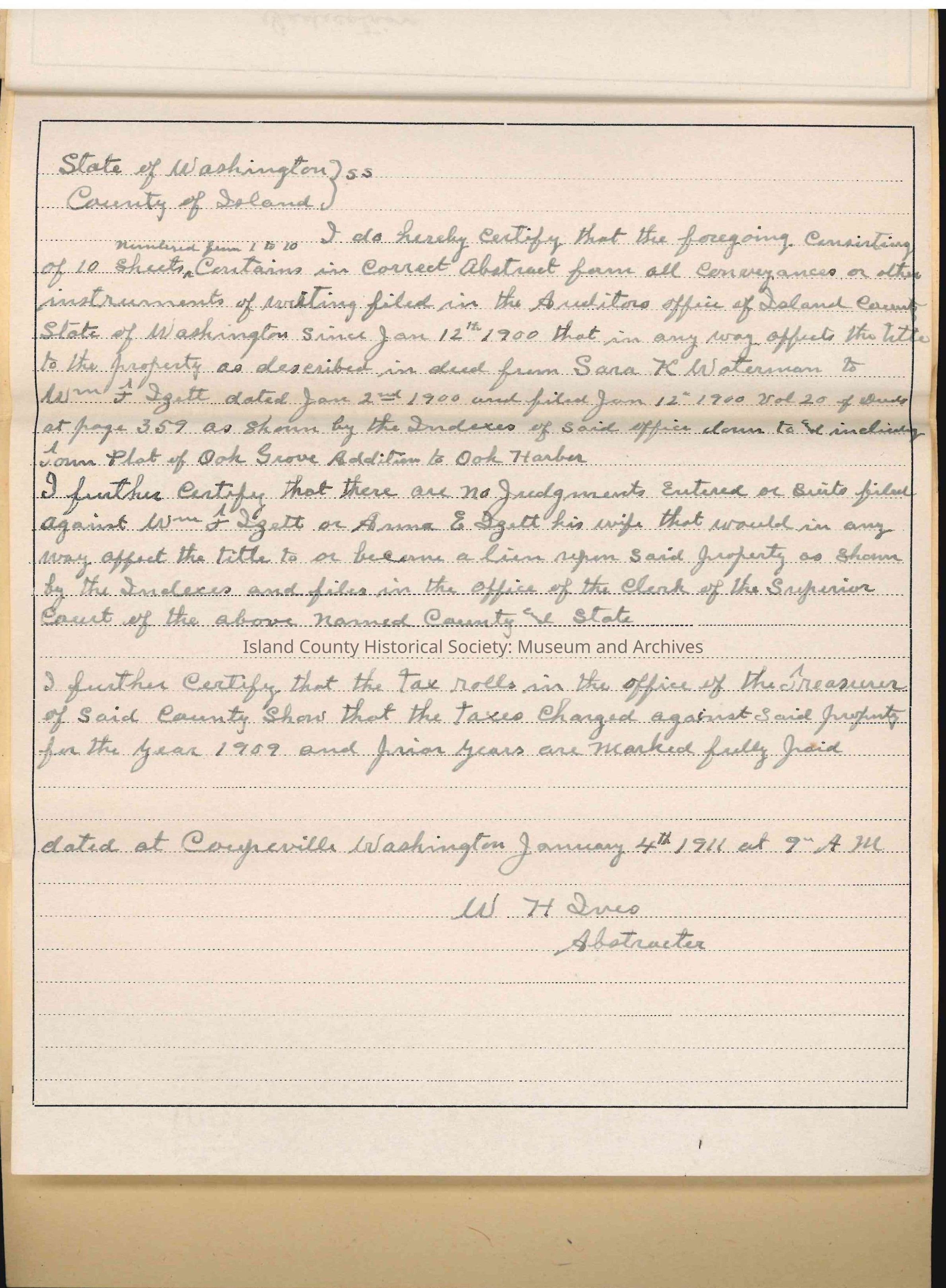 More Grantors and Recipients are listed within this title. To view this Abstract of Title and its subsequent Grantors/Recipients, please email the ICHS Archivist at arc-ichs@whidbey.net.Collection