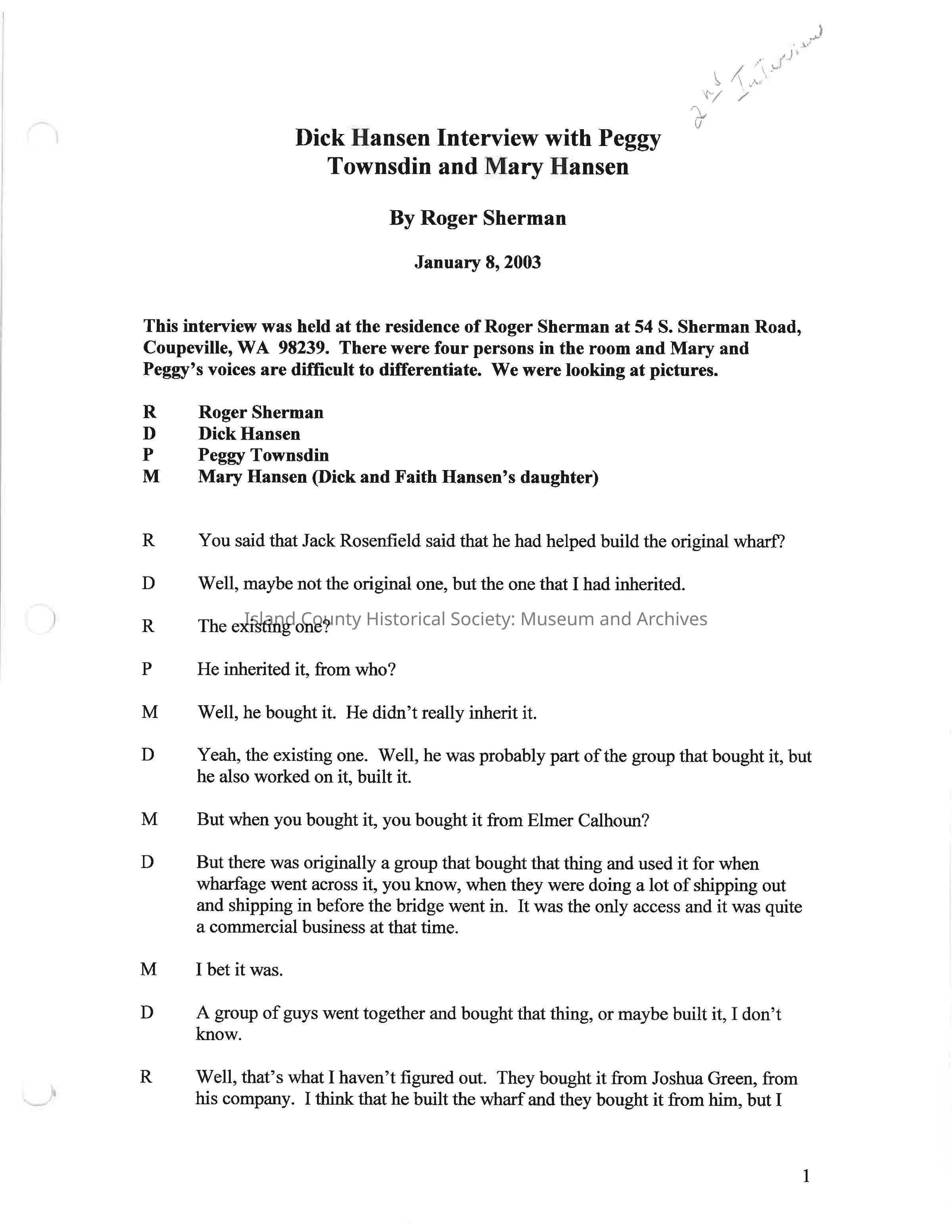Interview with Dick Hansen, Peggy Townsdin, and Mary HansenEntry/Object ID