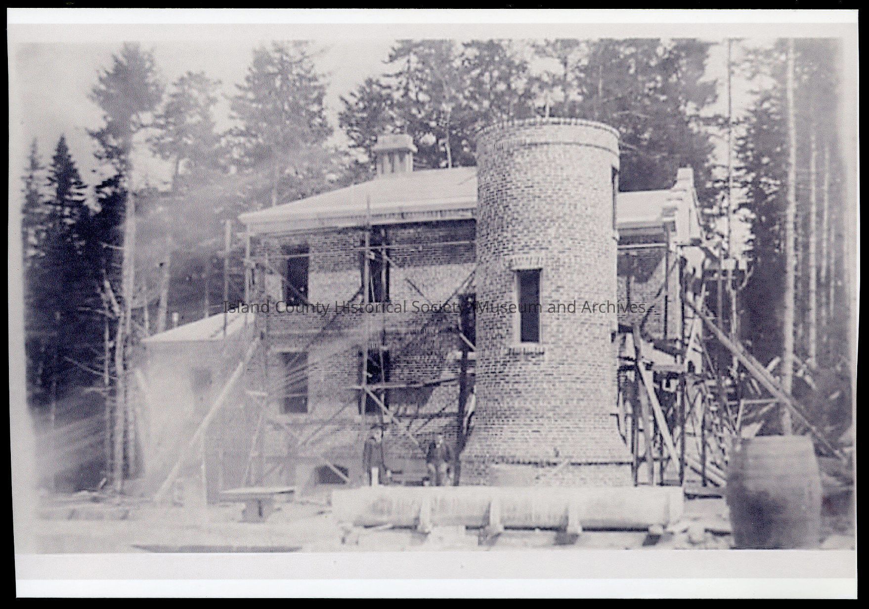 Photograph of Admiralty Head Lighthouse in Fort Casey, built in 1903 and decommissioned in 1922. This brick lighthouse replaced the 1865 wooden lighthouse.Photograph Details