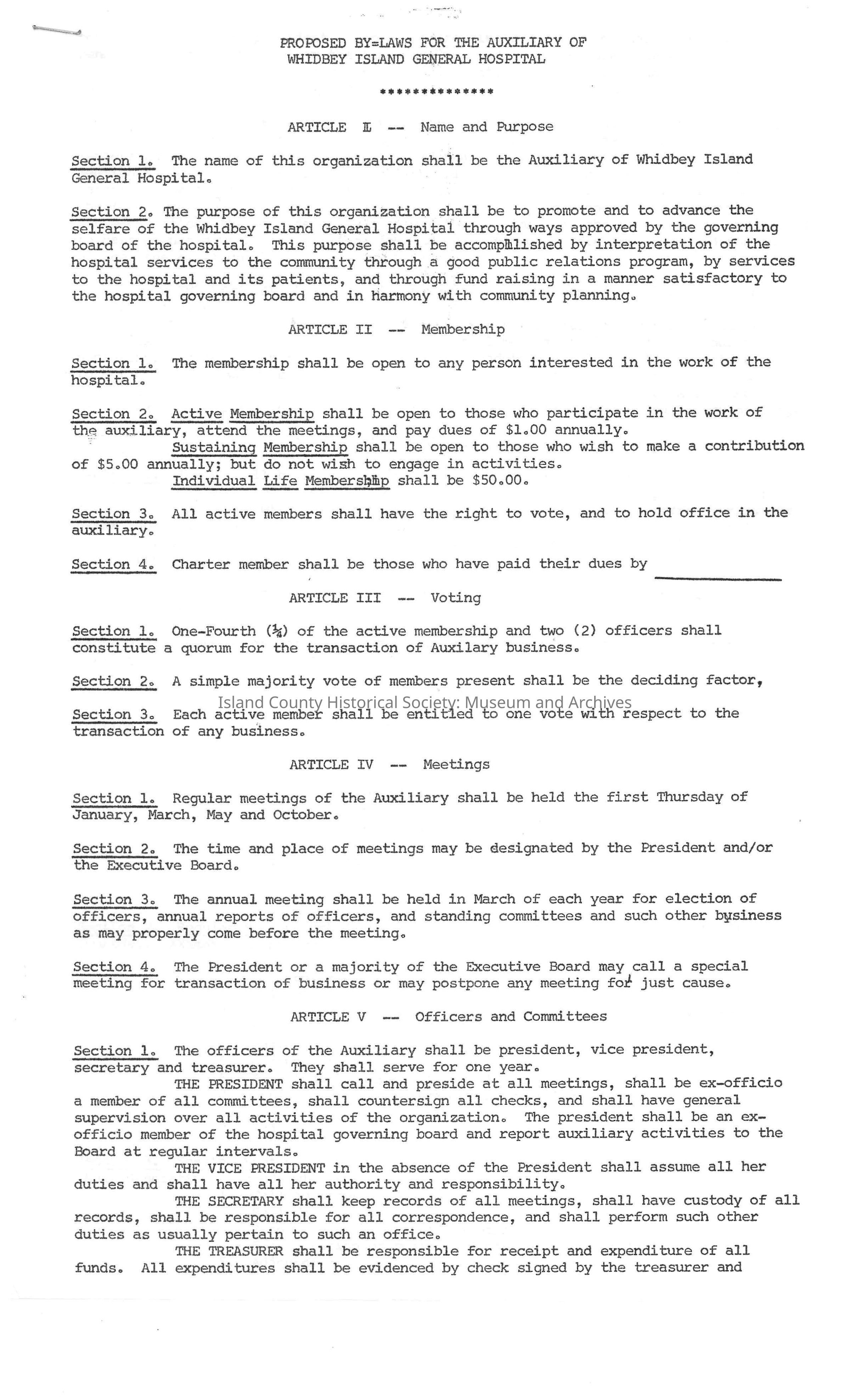 Proposed by-laws for the Auxiliary of Whidbey Island General HospitalArchive Details