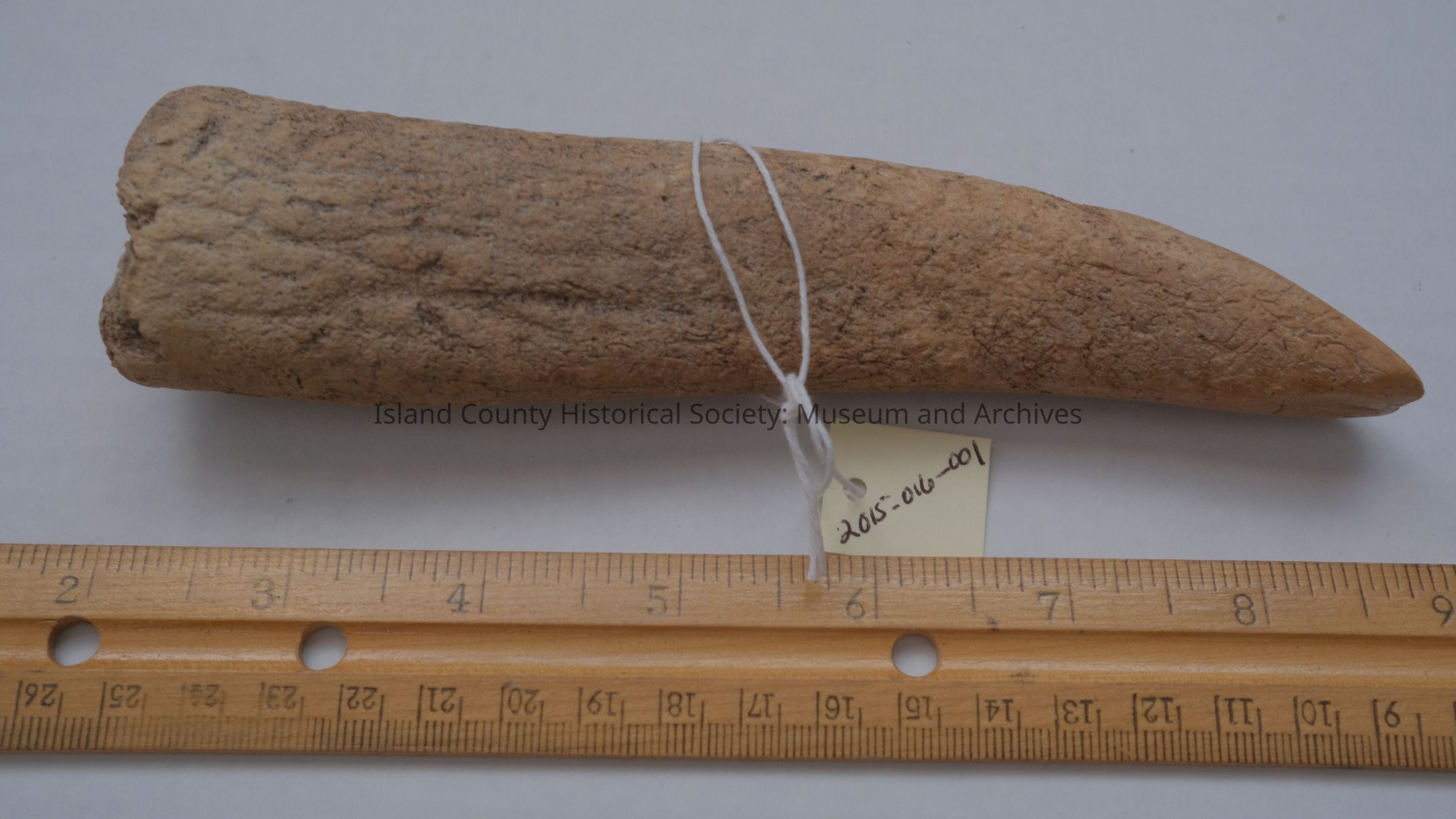 Antler wedge tool. Worked at end to form wedge shape. "6 3/4 inch long. Found about 30-60 feet away from Monroe Landing Road boat launch in low tide water."