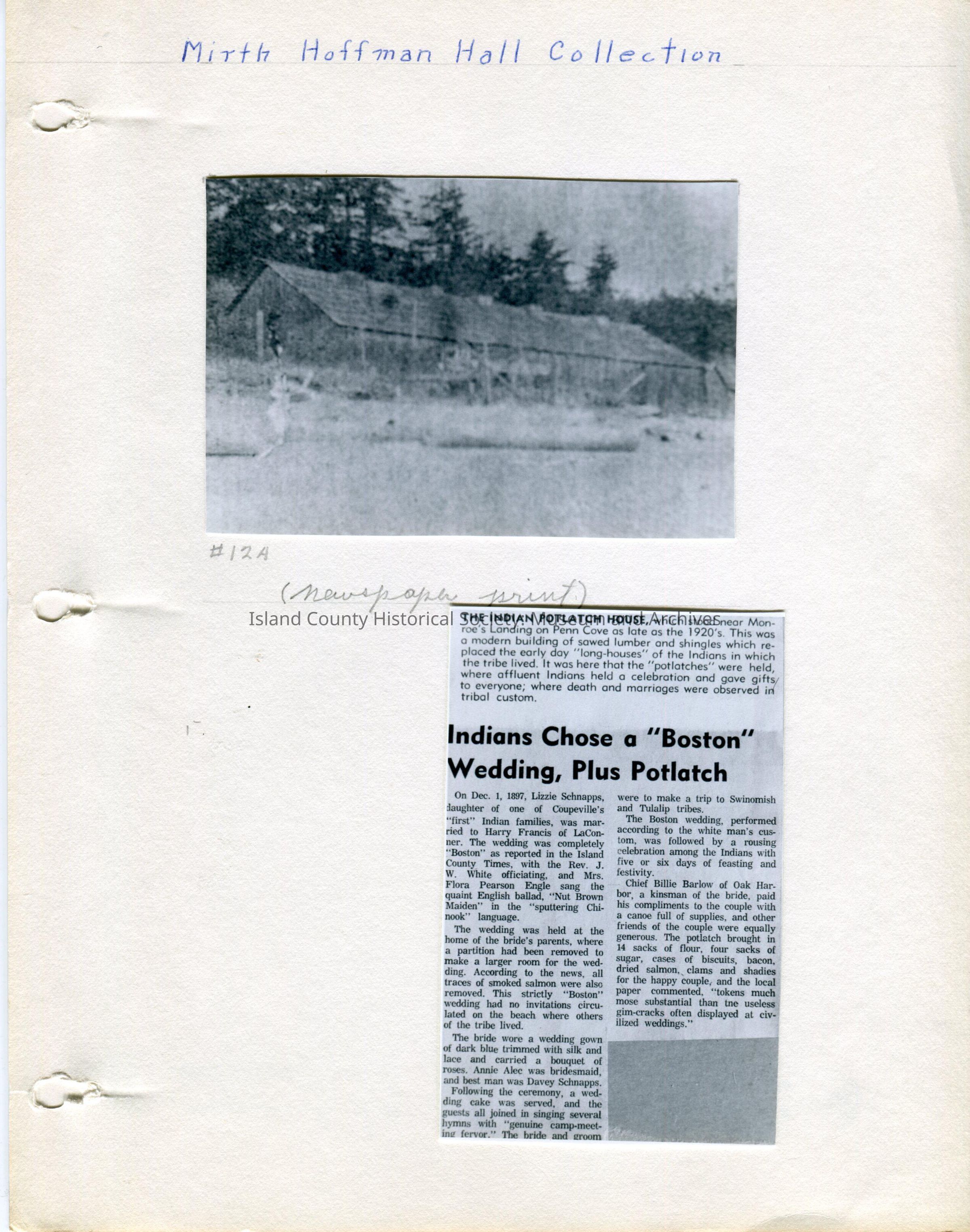 Bottom News Article - newspaper article about the Dec. 1, 1897 "Boston" wedding of Lizzie Schnapps, daughter of one of the Coupeville's "first"Indian families, to Harry Francis of LaConner.