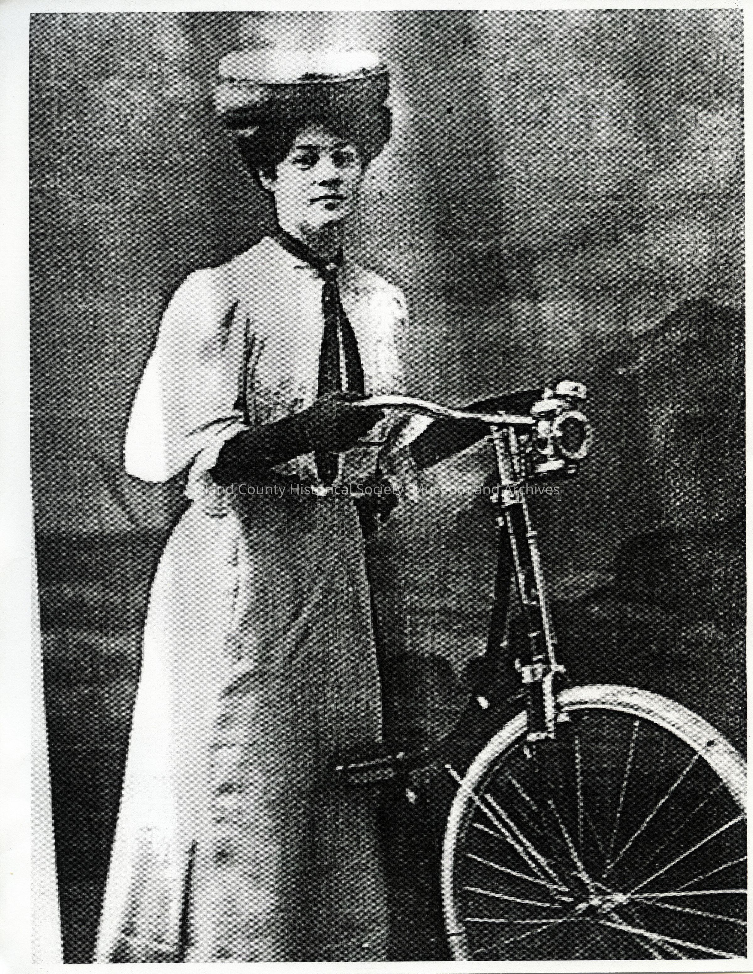 Grandma Elizabeth Bell with her bicycle that she brought with her fron Scotland at age 18.