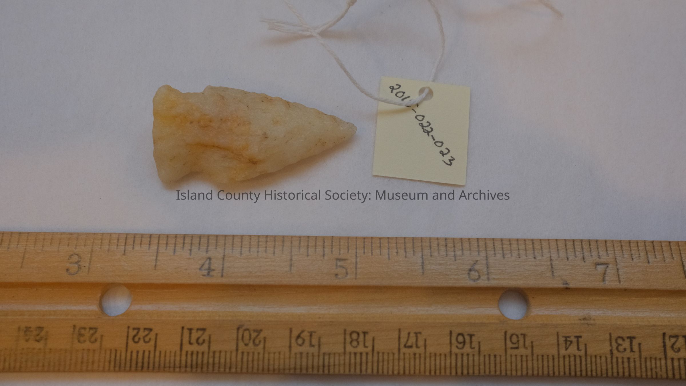 stone projectile point, while and tan