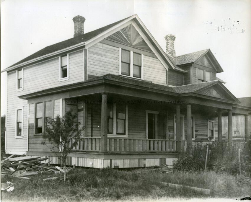 Home of Anton Muller in Cresent Harbor. The large two story home is surrounded by wood piles.