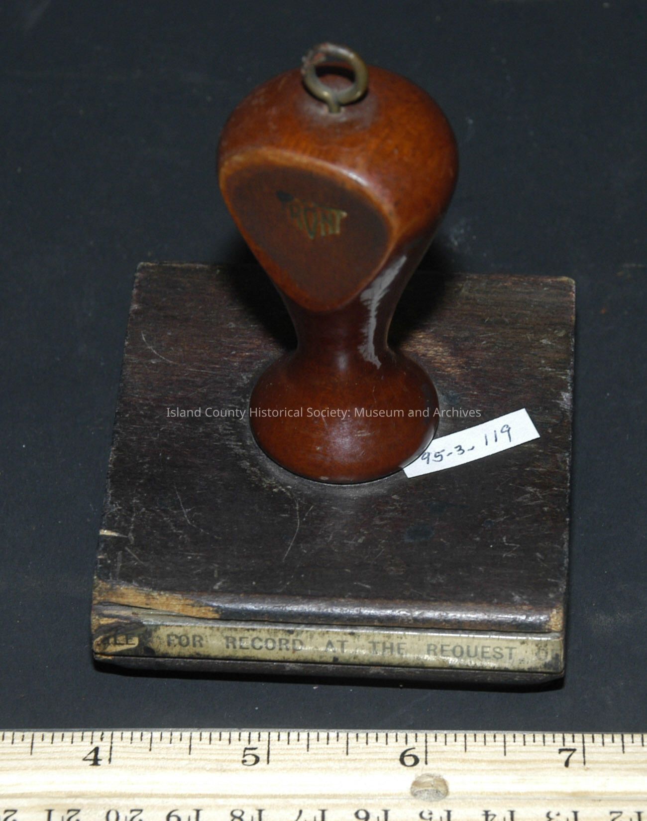 Rubber stamp - 3" x 3" - "Filed for record at the request of _______ A.D. 19__. At ____ o'clock and ____Min. ___M ____ and recorded in Vol. ___ of _____ Page ____ RECORDS OF ISLAND COUNTY, WASH. __________ Auditor of Island Co. Deputy ____ "
