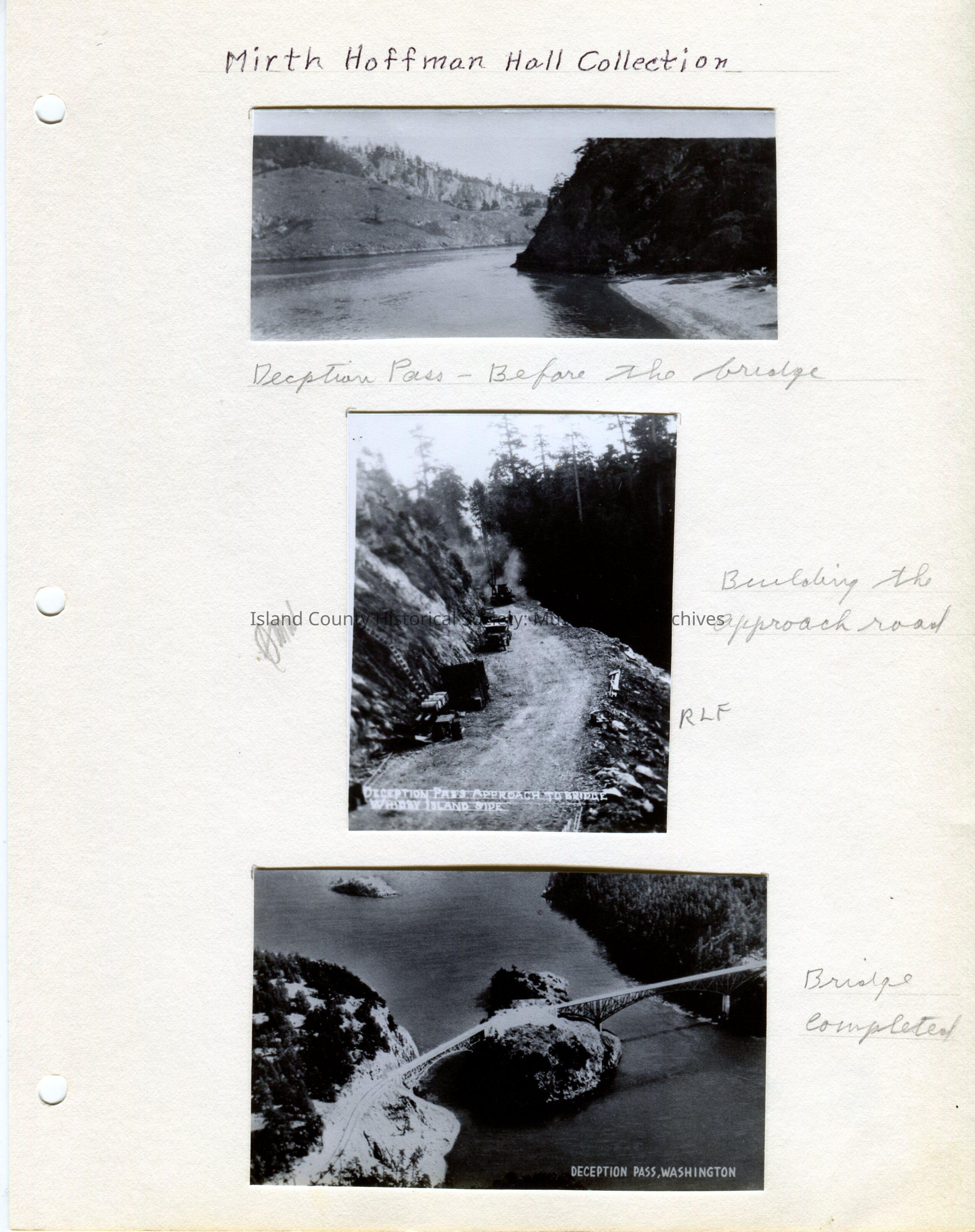 Bottom Photo - 4.5"W x 2.75"H - Aerial photo of the Deception Pass bridge after it was completed. No date