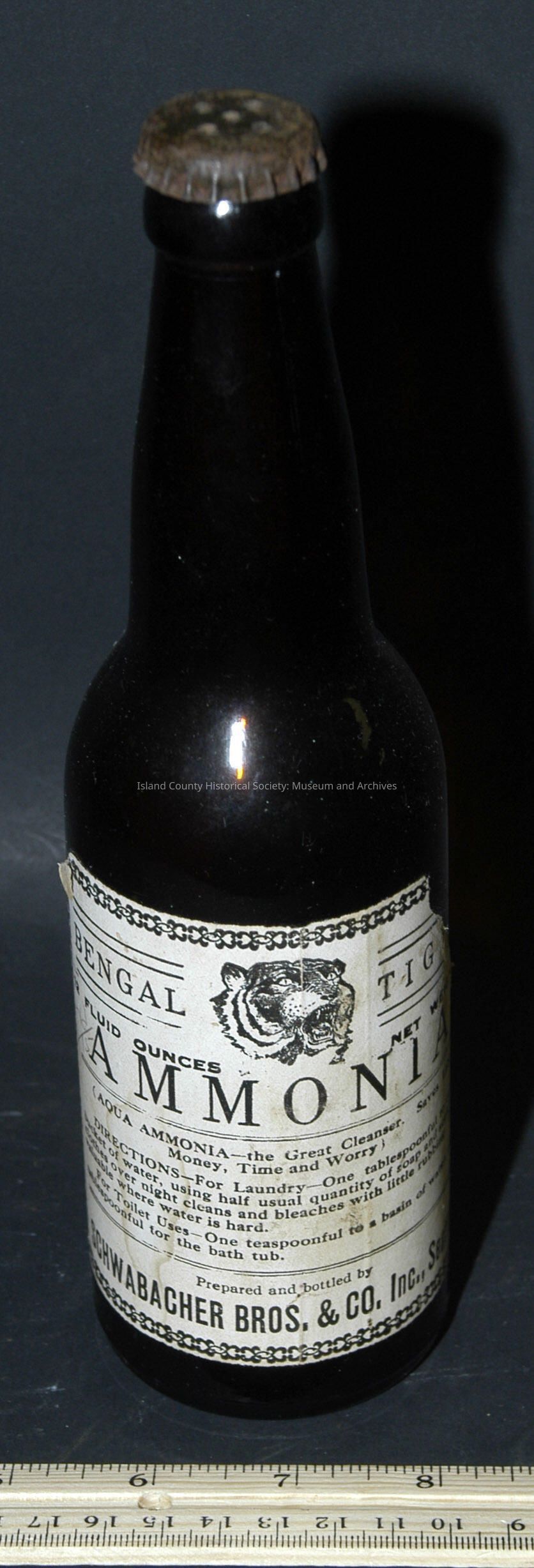 brown 9 1/2" bottle with metal lid - Bengal Tiger brand Ammonia