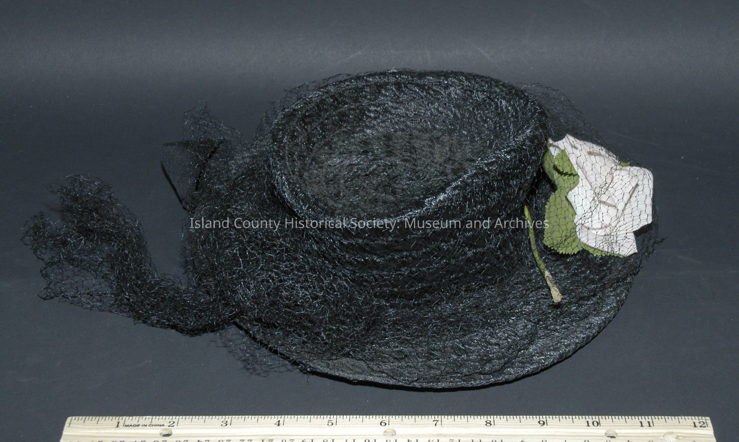 Black straw hat with pink roses - c. 1930. Owned by Athaleen Weedin.