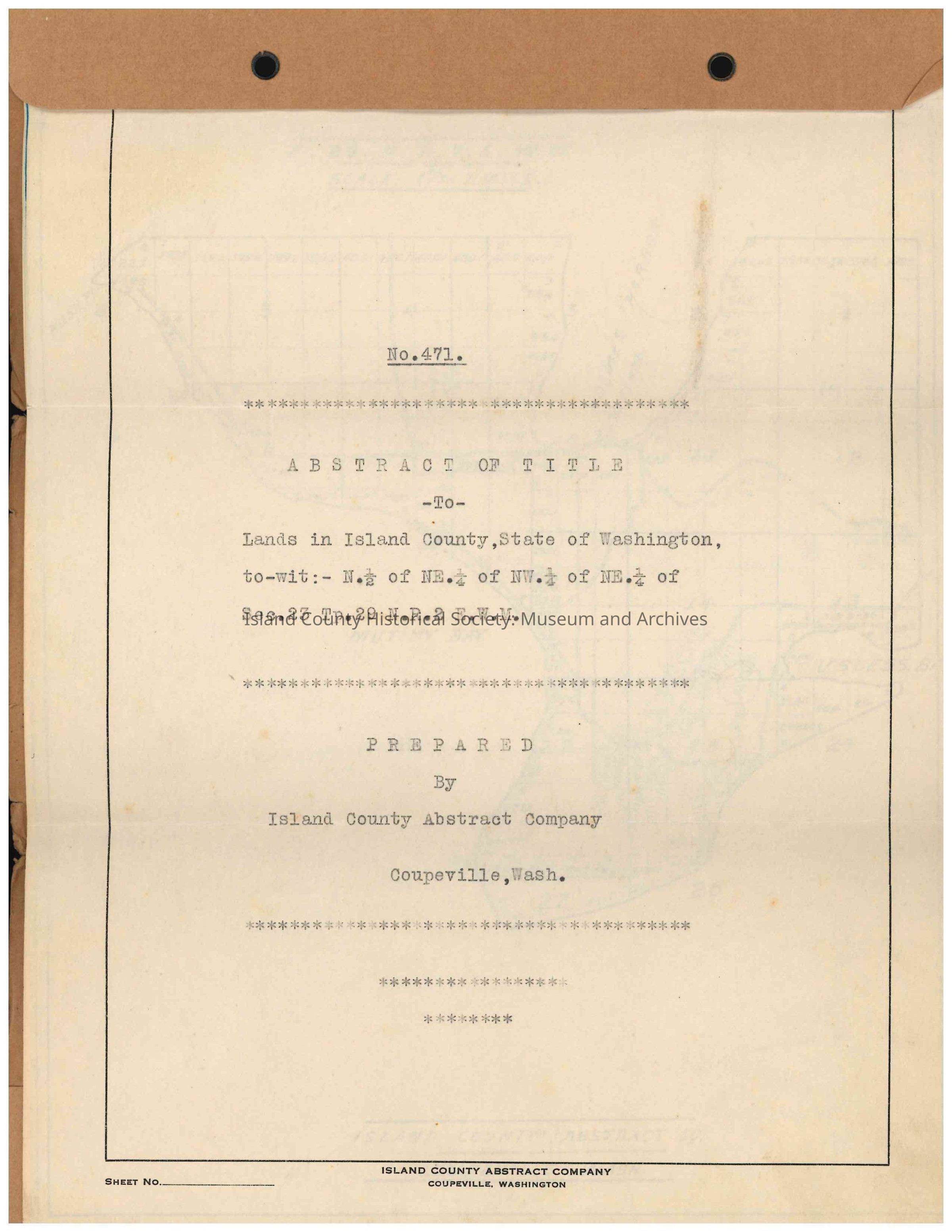 More Grantors and Recipients are listed within this title. To view this Abstract of Title and its subsequent Grantors/Recipients, please email the ICHS Archivist at arc-ichs@whidbey.net.Collection