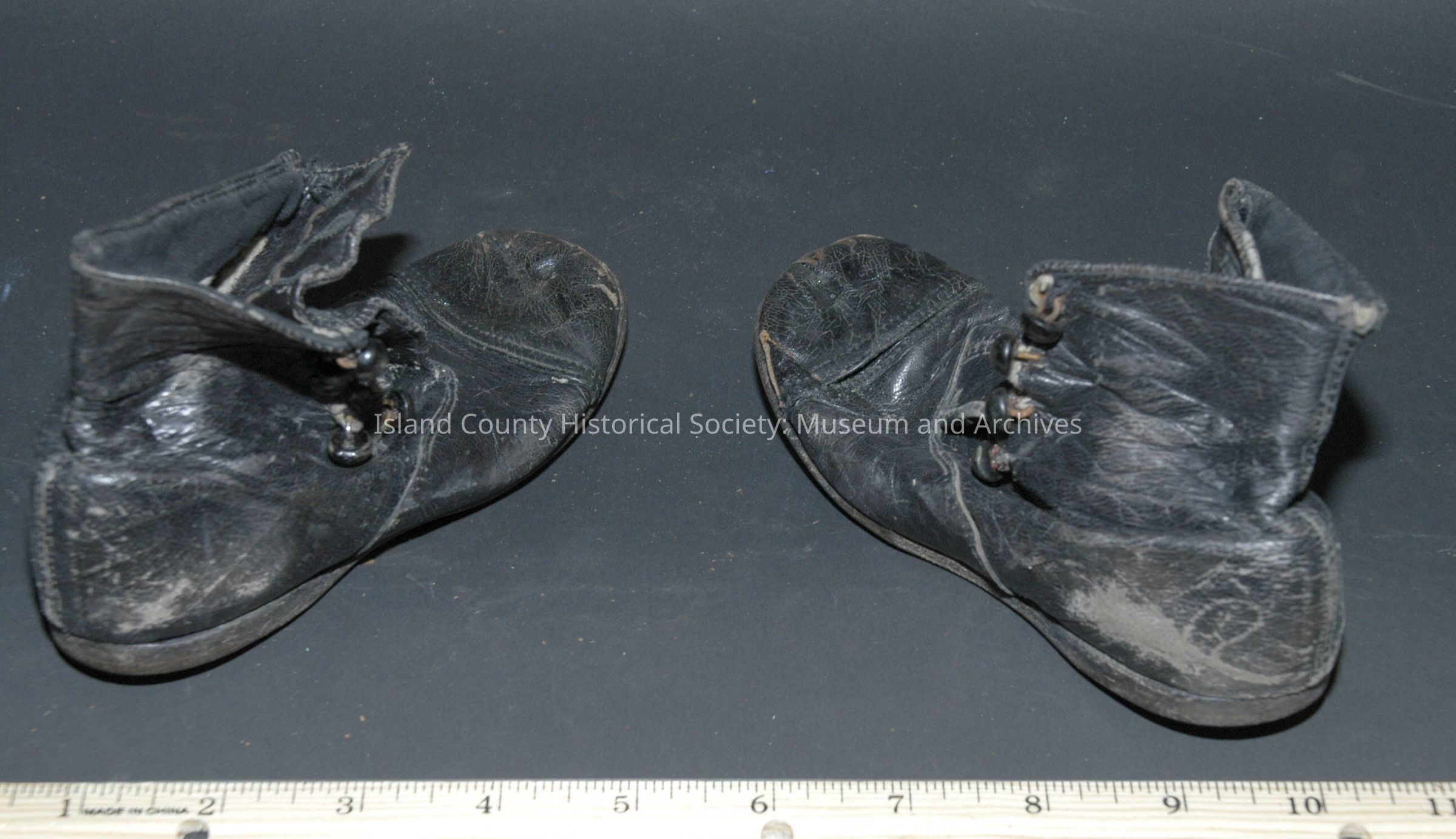 child's shoes, black leather, 5 buttons