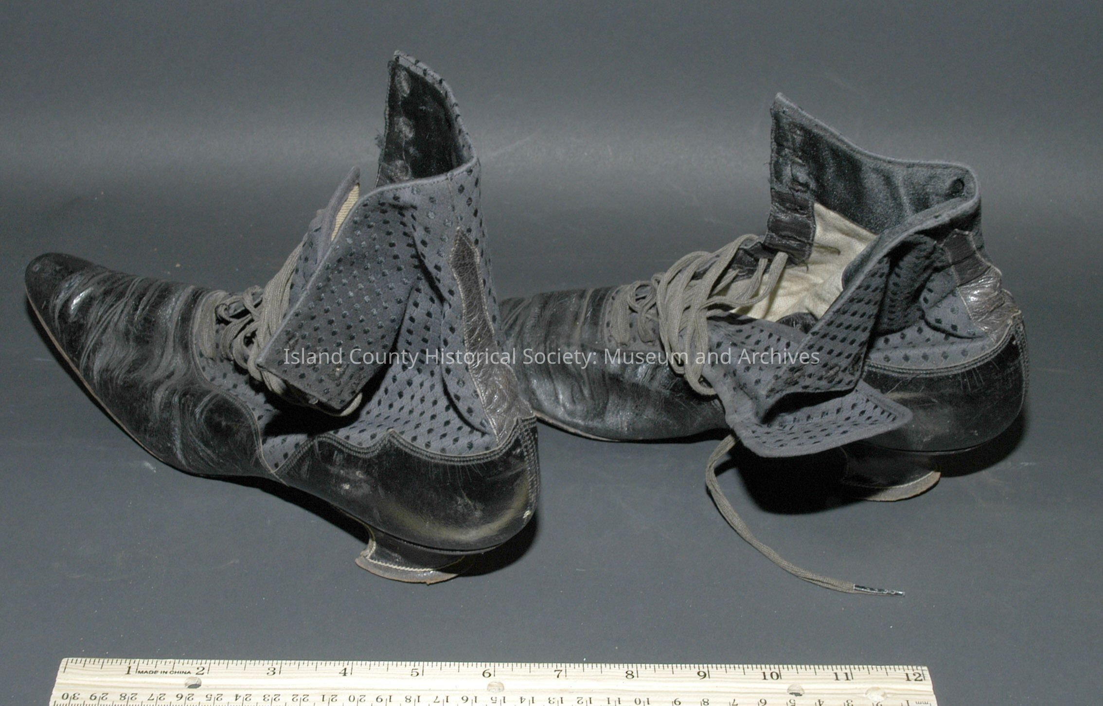 Shoes - A and B - ladies black leather hightops with laces and fabric uppers