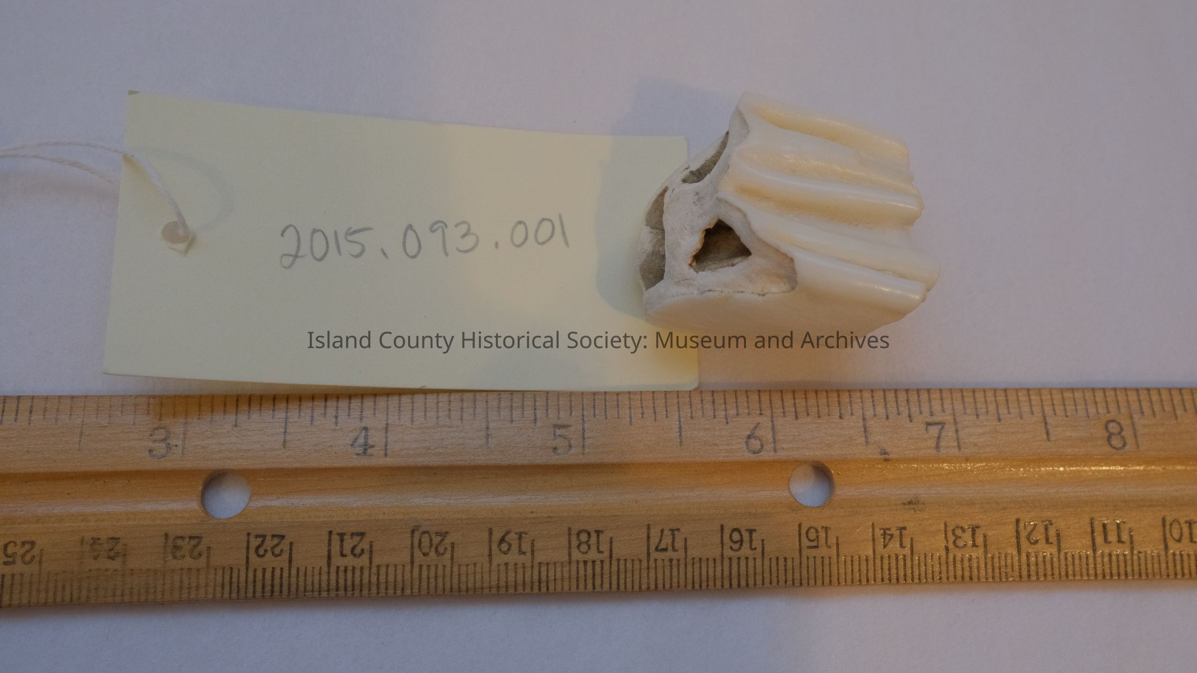 "Ice age bison tooth (as confirmed by archaeologist relative). Donor states if was found on the beach along Penn Cove east of Coupeville near Long Point.