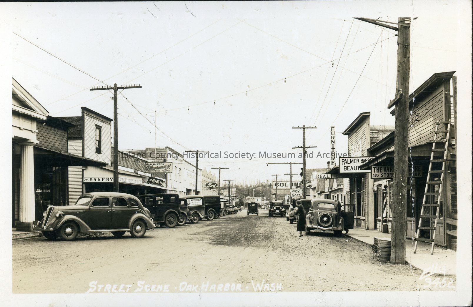 Postcard depicting Barrington Ave in Oak Harbor, c. 1940s. Photo by Ellis.Collection