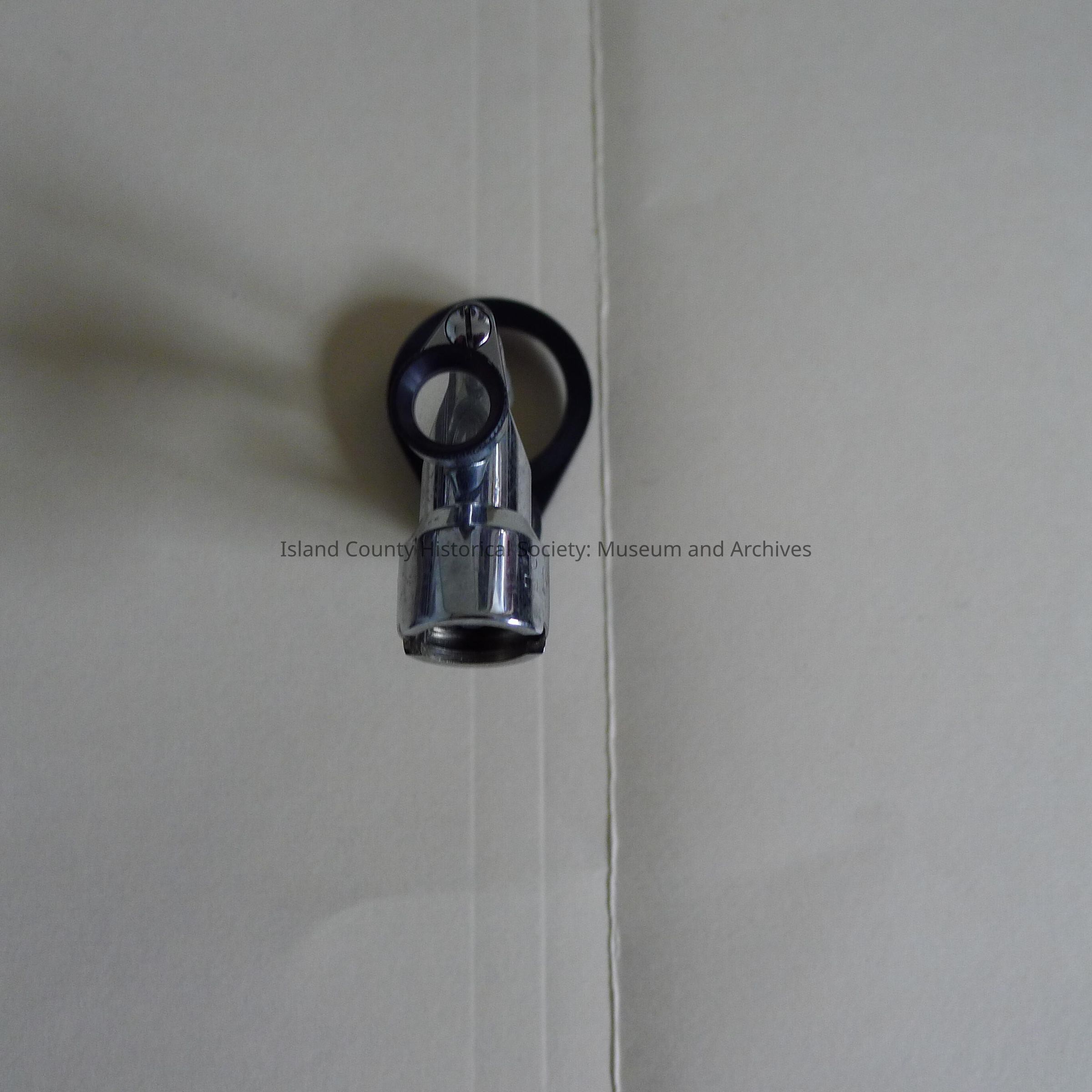Magnifying Lens made of metal, plastic and glass. Fair condition (some minor tarnishing). Engraved: "Germany" and "Propper" and logo of P on top of a rectangle lying lengthwise.